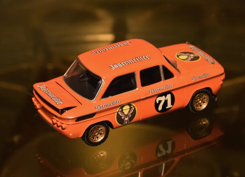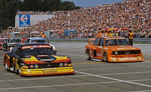 1974 DRM Norisring, BMW Schlüter 2002 Tii. The battle in division II of the DRM Championship was between Ford and BMW. The Zakspeed Escorts were favourite thanks to their 16 valve engines. The group 2 BMW 2002 were less powerful but had independent rear axle which gave them better traction. Helmut Kelleners drove this Jägermeister BMW from the less known team of Schlüter. He finished third and fourth a few times during the season, but retired at the Norisring.