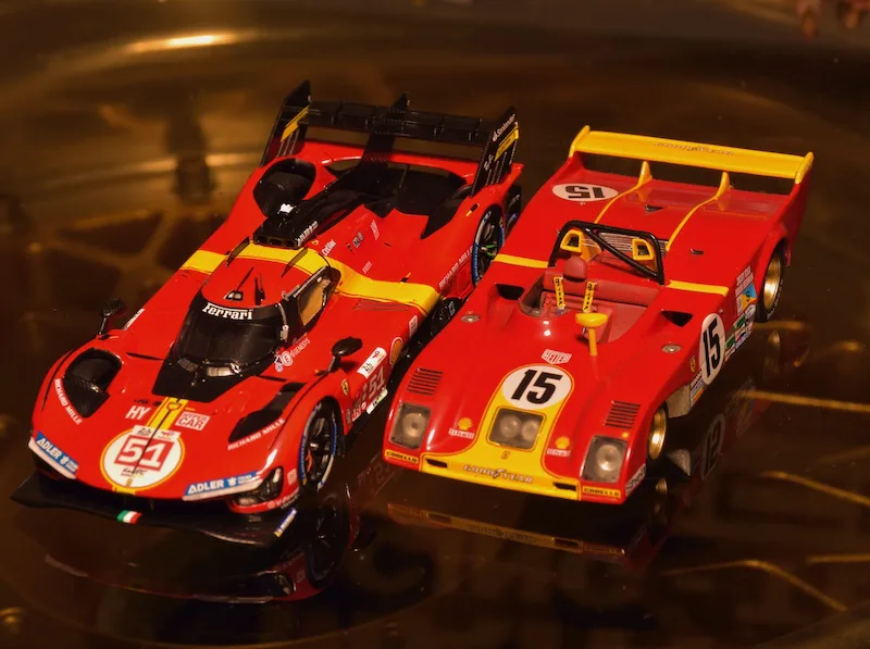 2023 Le Mans 24h, Ferrari 499P. More than 20 years later, different kind of prototypes raced at Le Mans; Audi, Bentley, Peugeot, Porsche and Toyota all won at Le Mans without a Ferrari in sight. But with the introduction of the Hypercars as replacement of the LMP1, manufacturers got interested in endurance racing again. At first only Toyota and some small independents, but in 2023 we suddenly also saw teams from Porsche, Cadillac, Peugeot and … Ferrari at Le Mans. AF Corse Ferrari took Ferrari’s first Le Mans victory in 58 years, after a hard battle with Toyota. The Ferrari livery looked familiar; the red with the yellow stripes was already used in the 1970’s.