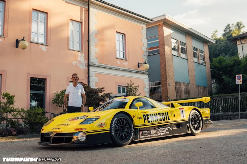 “Érik Comas”, street legal Nissan R390 GT1. Érik Comas is a French racing driver, former champion in Formula 3000 and four years active in Formula 1. His greatest success was winning the All-Japan Grand Touring Car Championship two years in a row in the yellow Pennzoil Nissans. With Nissan, he competed in the 1998 Le Mans in the Nissan R390 GT1 finishing in 6th together with Jan Lammers and Andrea Montermini. Comas obtained that original #R8 chassis in 2017 and started restoration in 2020. A Glass windshield, more ground clearance, additional cooling, steel disk brakes replacing the carbon fibre ones, a decent interior … many changes were made to make the car street legal since 2022, but the engine is still the original one. The finishing touch in 2025 was wrapping the white car in the Pennzoil livery of his championship winning Nissans. Érik Comas his dream has come true!