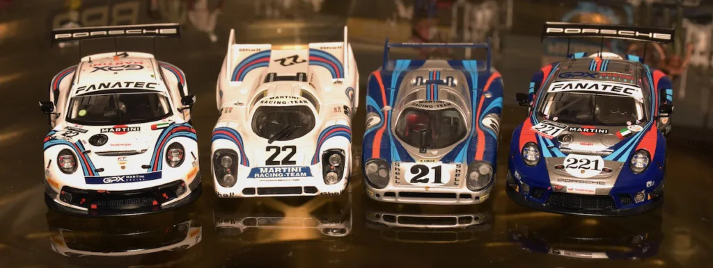2019 Spa-Francorchamps 24h, Porsche 911 GT3 R (991). The GPX Porsche had the same colors as the famous Porsche 917K #20 that raced in 1970 and featured in the movie “Le Mans”. Three Porsche works drivers drove it to victory in the rain soaked Spa 24-hour race.