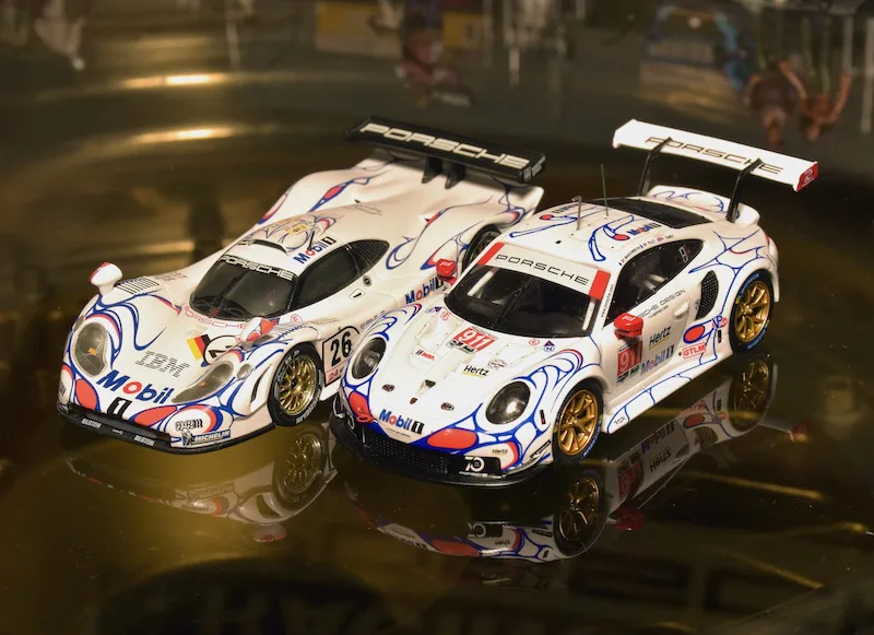 2018 Petit Le Mans, Porsche 911 RSR-17. The Porsche factory teams used some historic liveries on their 911 RSR such as Coca Cola, Pink Pig or Brumos. At Petit Le Mans the factory cars wore the Mobil 1 colors similar to the 911 GT1 that won Le Mans in 1998.