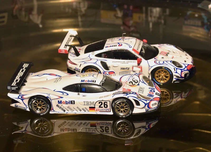 1997 Le Mans 24h, Porsche 911 GT1. JB Racing entered this beautiful 911 GT1 at Le Mans. It was clear that the team was sponsored by Marlboro bearing the same livery as was very common 14 years before. Rules about tobacco advertising have become much stricter, so the Marlboro name was replaced by some lines, but every race fan knows the meaning.