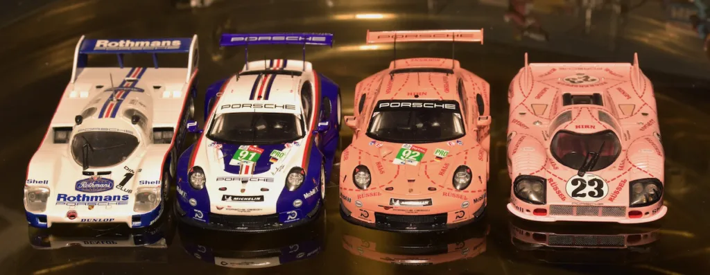 2018 Le Mans 24h, Porsche 911 RSR-17. In 2018 the factory Porsches at Le Mans – run by Manthey – raced in historic liveries. One was the Pink Pig from 1971 and another had the 1983 Rothmans colors but without the Rothmans name as tobacco advertising is completely banned.
