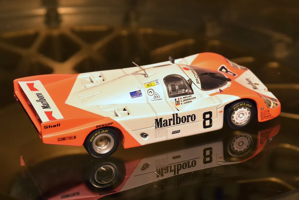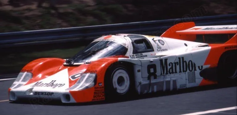 1983 Le Mans 24h, Porsche 956L (K). Just as in Monza, the Joest Porsche raced in the Marlboro colors in Le Mans. It damaged its bodywork in a crash. The Joest crew had to replace the rear part by that of a short tail version, which has more downforce but lacks 13 mph top speed. Despite that, it finished 6th.