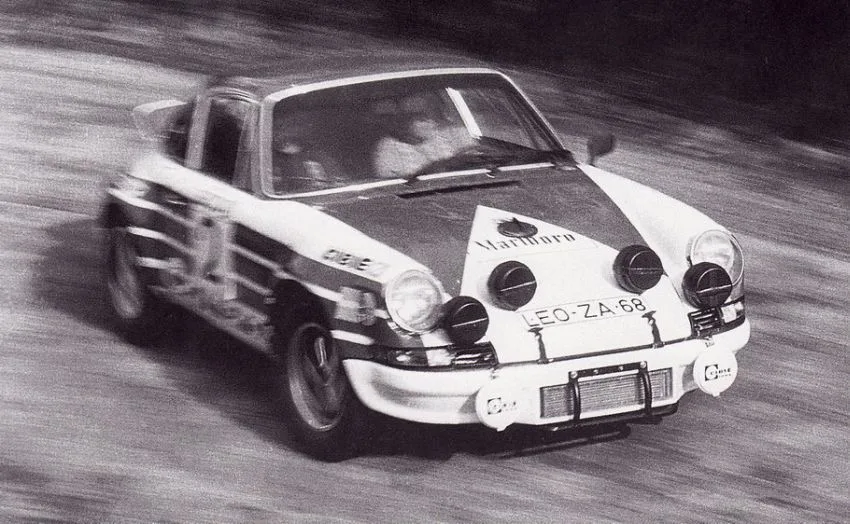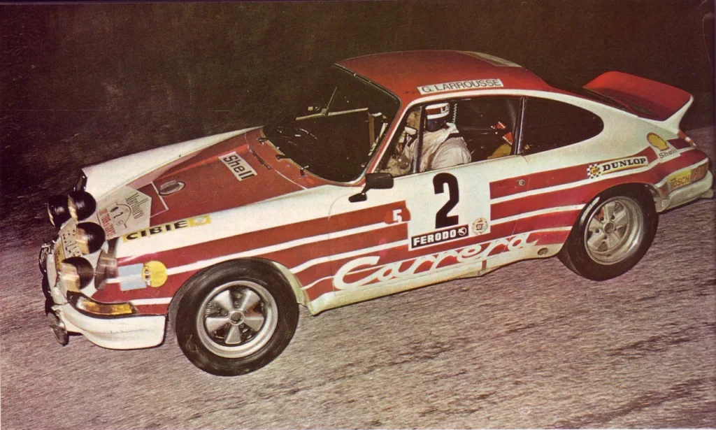 1972 Test Paul Ricard, Porsche 911 RSR. Two Marlboro sponsored works Porsche 911 Carrera RS competed in the Tour de Corse in November 1972 and both retired. The #6 car was shipped to Paul Ricard where a test session was planned that would turn the RS into the first RSR. The car was damaged in the Tour de Corse and repaired which explains the white door. Bigger wheel arches were mounted to cover the much wider rear wheels and also the larger rear spoiler that would make its debut at the Targa Florio in 1973 were already tested. The RSR would make its race debut at the Daytona 24h race in January 1973 as a prototype because the GT homologation wasn’t valid before March 1st. Surprisingly Porsche didn’t use the wider rear bodywork and rear wing at Daytona, they could have because of the prototype entry. Maybe because it would cause too much drag on the fast banking…