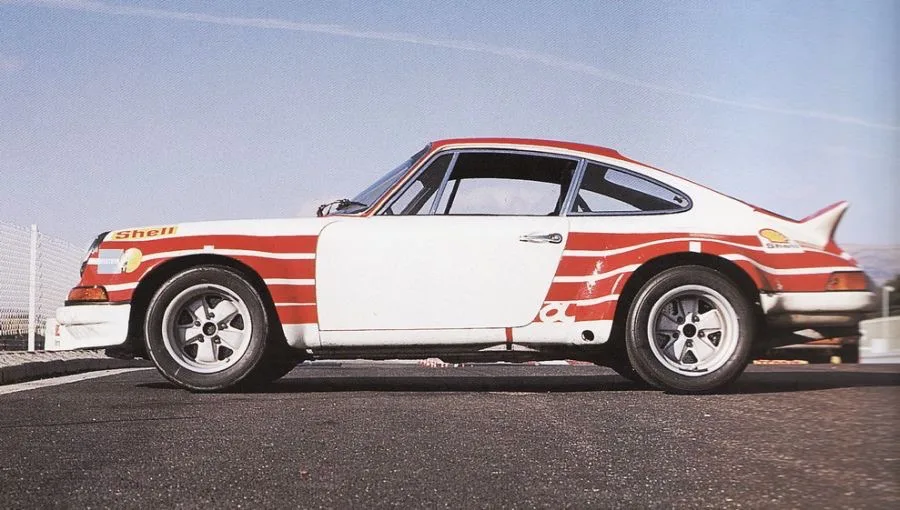 Porsche 911 Carrera RSR – 2.8 liter Porsche 911/72 flat-6, approx. 300 hp. Dunlop tires. Weight 820 kg. Steel monocoque, chassisnr. 911 360 0019 which would become R1