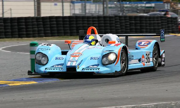 2006 Le Mans 24h, Courage C65 – Ford. Paul Belmondo Racing entered 2 Gulf sponsored Courages this year. They use the Mecachrome built (badged Ford) V8 engine. But none of them finished, the #37 car had a heavy crash because of a blown tire, the #36’s gearbox failed. The LMP2’s still are very fragile cars.