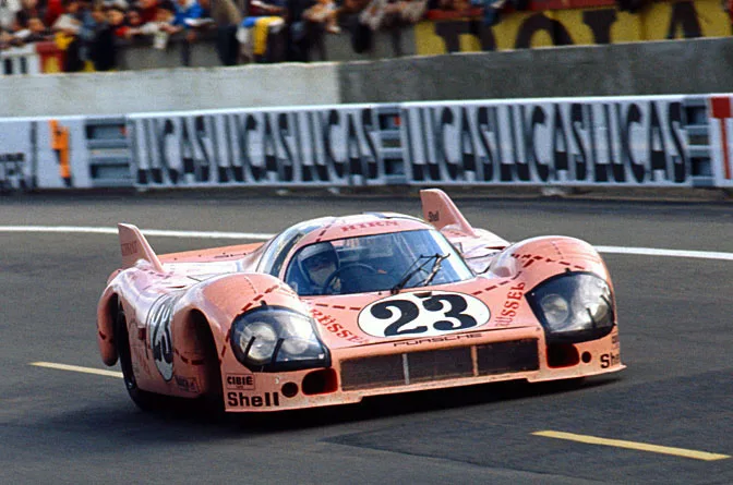 1971 Le Mans 24h, Porsche 917/20. Count Rossi refused to paint it in the Martini livery or even put its name on it. Someone called the car a pig and Porsche designer Anatole Lapine’s idea for the new livery was born. The Porsche 917/20 was not as successful as hoped for, but its chassis would be the basis for the all conquering CanAm 917 turbos.