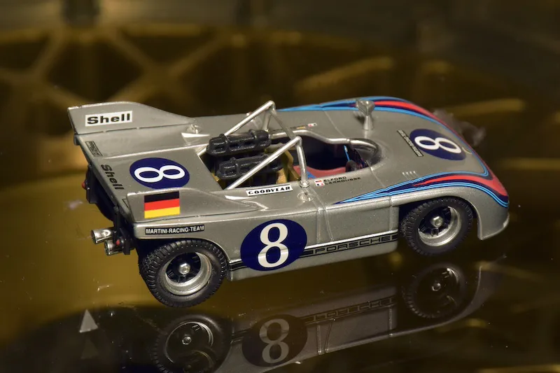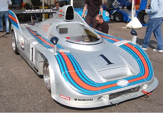 Martini Porsche 908/03 – 3.0 Porsche 908 flat-8, approx 350 hp. Firestone tires. Weight 545 kg. Steel space frame, chassisnrs. #908/03 008 & 010