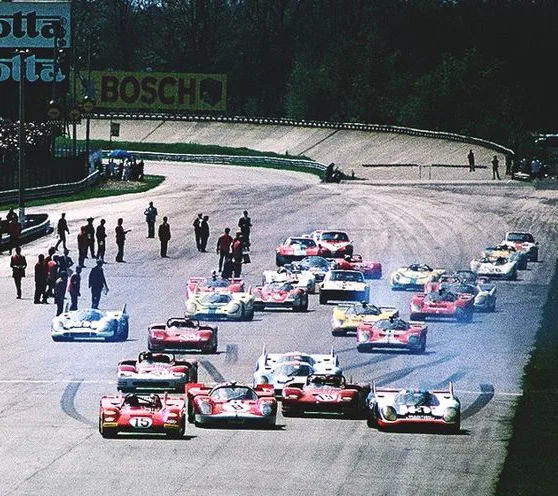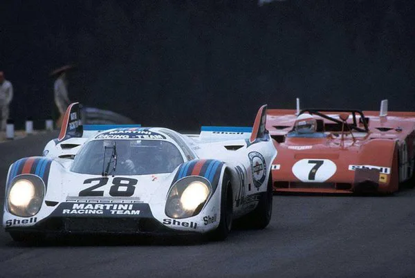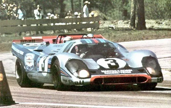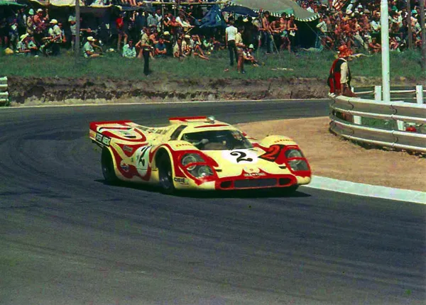 1971 Sebring 12h, Porsche 917K. Elford and Larrousse lead the race in Argentina, before they got disqualified. In Sebring they managed to get to the end without problems and won the 12-hour race. Alfa Romeos were second and third.