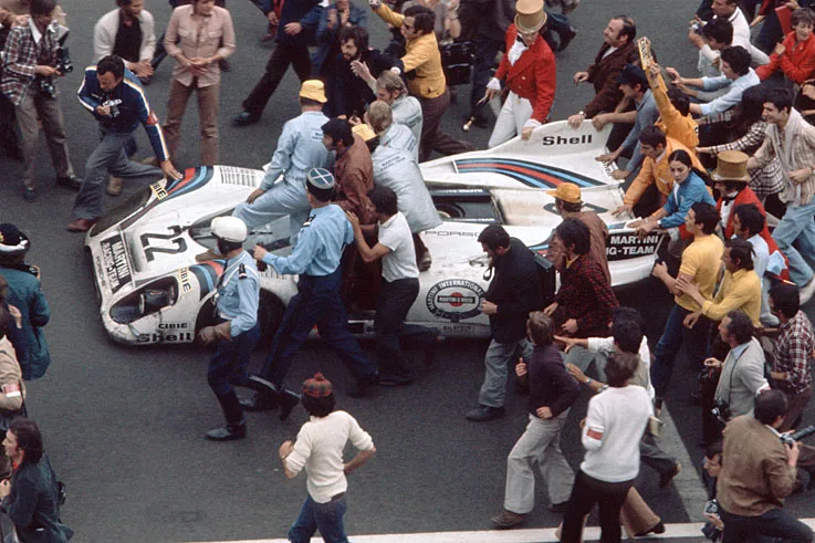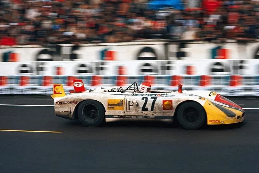 1971 Le Mans 24h, Porsche 917K. The Porsche 917’s were this year’s favourites for the Le Mans victory. But it weren’t the very fast longtails that won. This new 917K with a magnesium chassis came first and set a distance record that existed until 2010.