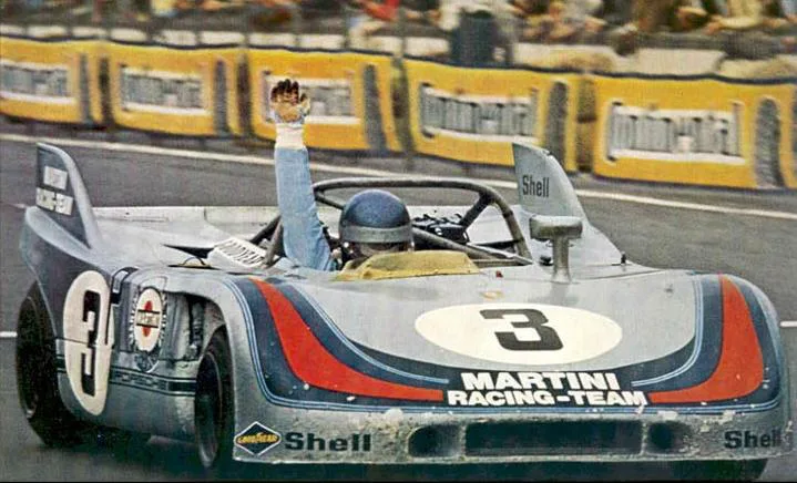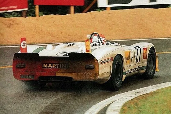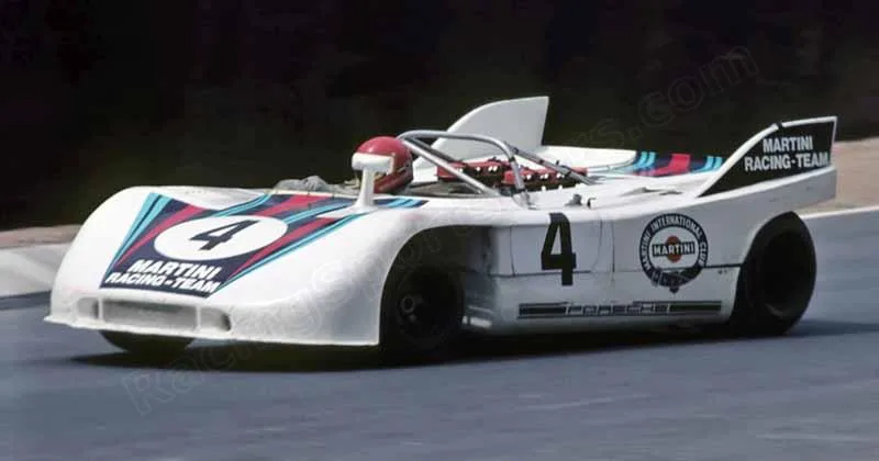 1971 Buenos Aires 1000km, Porsche 917K. The Temporada, Buenos Aires’ 1000 km race was the first race of the1971 championship. Battle went on between the Gulf Porsches and the 3-liter Alfa Romeos. The Martini Porsches used the now famous silver and stripe colors for the first time but did not score. The #36 car from Van Lennep and Marko retired with a broken engine after only two laps. The team expected it would probably happen before the race started, so expectations were not that high. #38 lead the race for a while but was disqualified because of unauthorized assistance outside the pit lane.