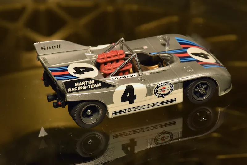 In 1970 the Porsche supported works teams were the Gulf sponsored JWA team, Porsche Salzburg that took Porsche’s first Le Mans victory and Hans-Dieter Dechent’s Martini Racing International. The Martini cars had some wild liveries in 1970. The well known silver and white with the blue and red striping appeared in 1971.