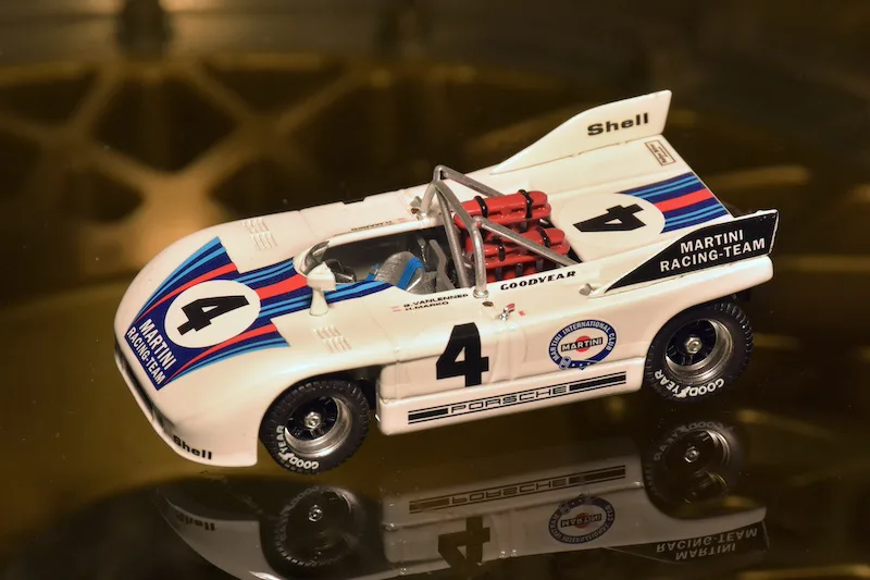 Martini Porsche 908/03 – 3.0 Porsche 908 flat-8, approx 350 hp. Firestone tires. Weight 545 kg. Steel space frame, chassisnrs. #908/03 008