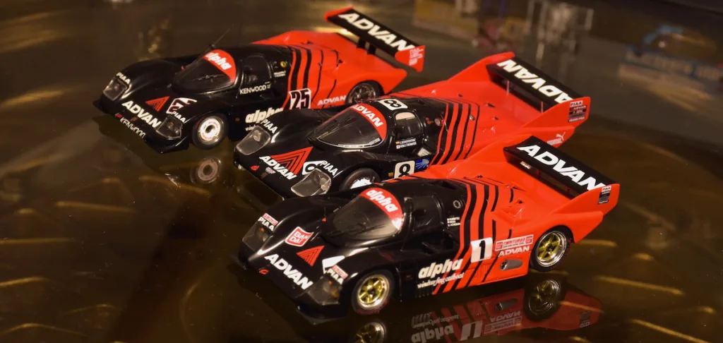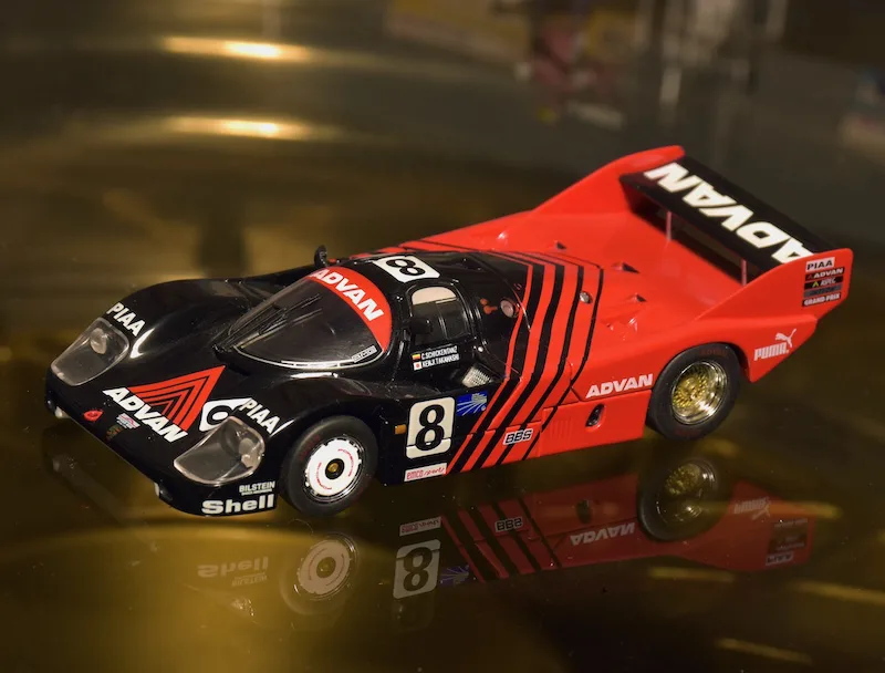 1987 Fuji 500 km, Porsche 962C. The Japanese Sports Prototype Championship was very popular in the second half of the 80’s. Porsches battled with Toyota’s and many European topdrivers were present. This Advan 962 won the 500km of Fuji and the drivers won the JSPC title in 1987.