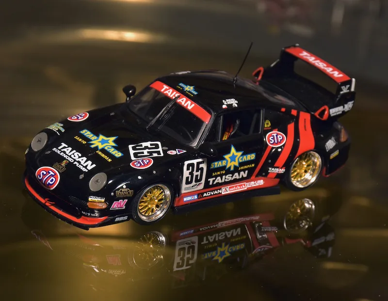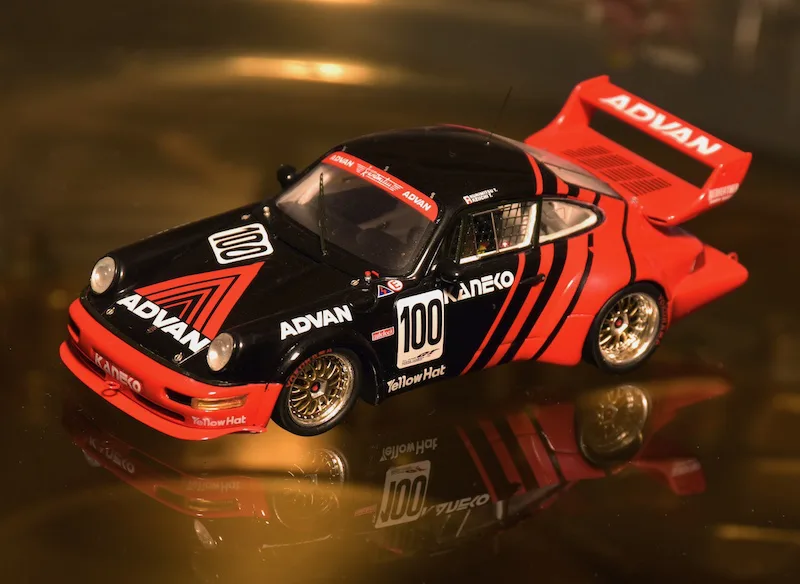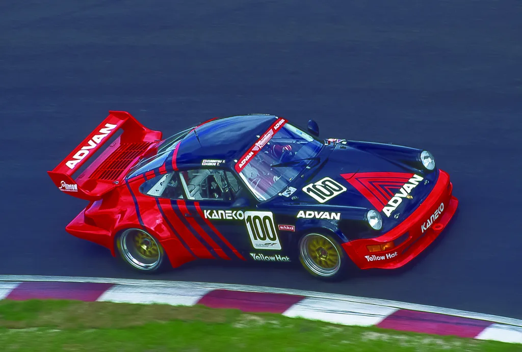 1994 Japanese GT Championship Sugo, Porsche 911 RSR turbo. 1994 Was the second year of the Japanese GT Championship. The grid was a mix of many different cars such as many Nissan Skyline, Toyota Supra, Porsche GT2, a downtuned 962, Ferrari F40 and even a Lamborghini Countach! This long tail Porsche RSR Turbo was entered by Team Kunimitsu and won the race at Sugo despite a spin in the closing laps.