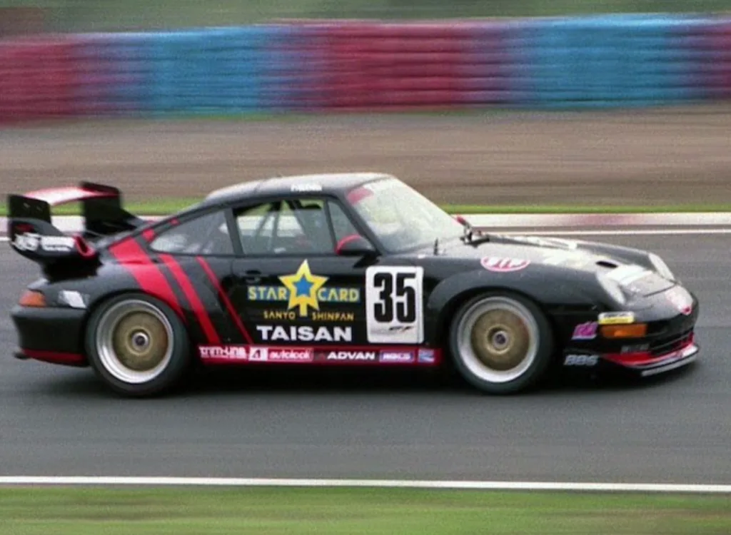 1995 Japanese GT Championship Sugo, Porsche 911 GT2. Team Taisan replaced the exotic Porsche 962 GT2 by this 911 GT2. It won the 300 kilometer race at Sugo in the hands of Reid and Kondo.