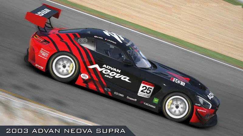 2003 Japanese GT Championship Motegi, Toyota Supra GT500. The Japanese GT Championship is a very spectacular racing series with lots of European top drivers. French driver Jeremy Dufour teams up with local hero Seji Ara in this Team Advan Tsuchiya Toyota Supra V8. Their best race was at Motegi where they finish third.