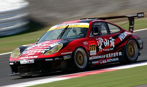 Team Taisan Advan Porsche 911 GT3 R (996) – 3.6 liter Porsche M96/70 flat-6, approx. 400 hp. Yokohama Advan tires. Weight 1200 kg. Steel monocoque, chassisnr. #ZYS692111