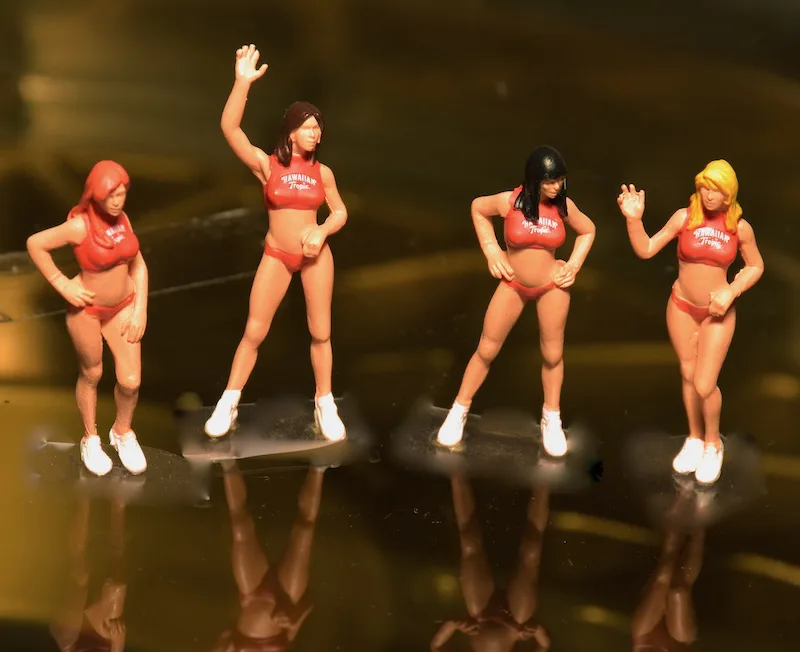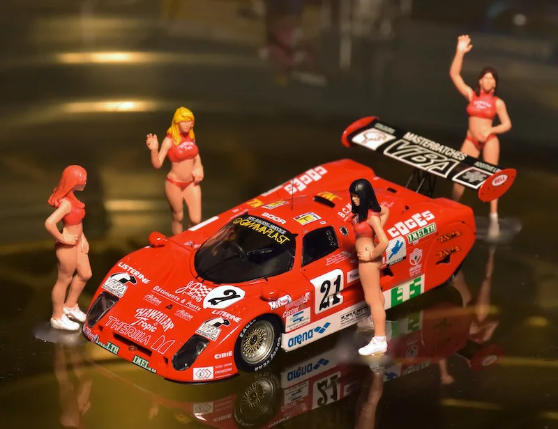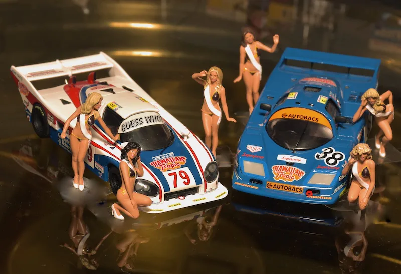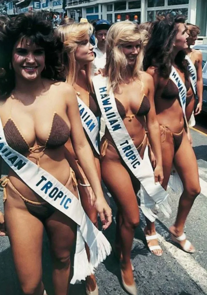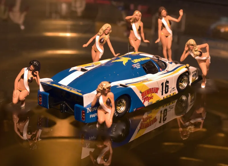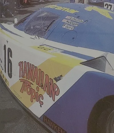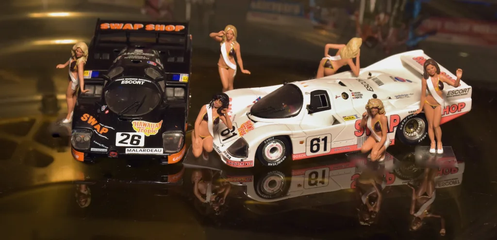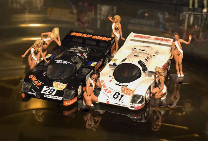 Hawaiian Tropic, producer of sun screens started sponsoring Le Mans cars and what better way to attract attention than to add some sexy ladies. In the first 10 years the ladies wore brown knitted bikini’s.