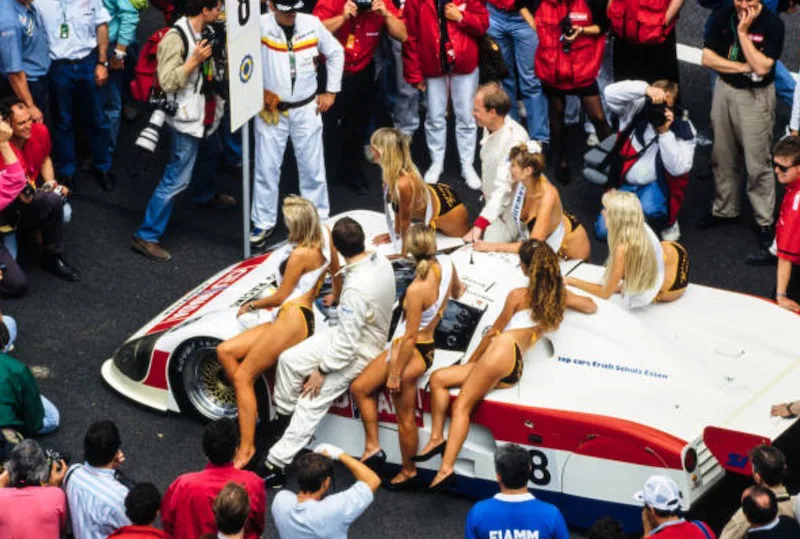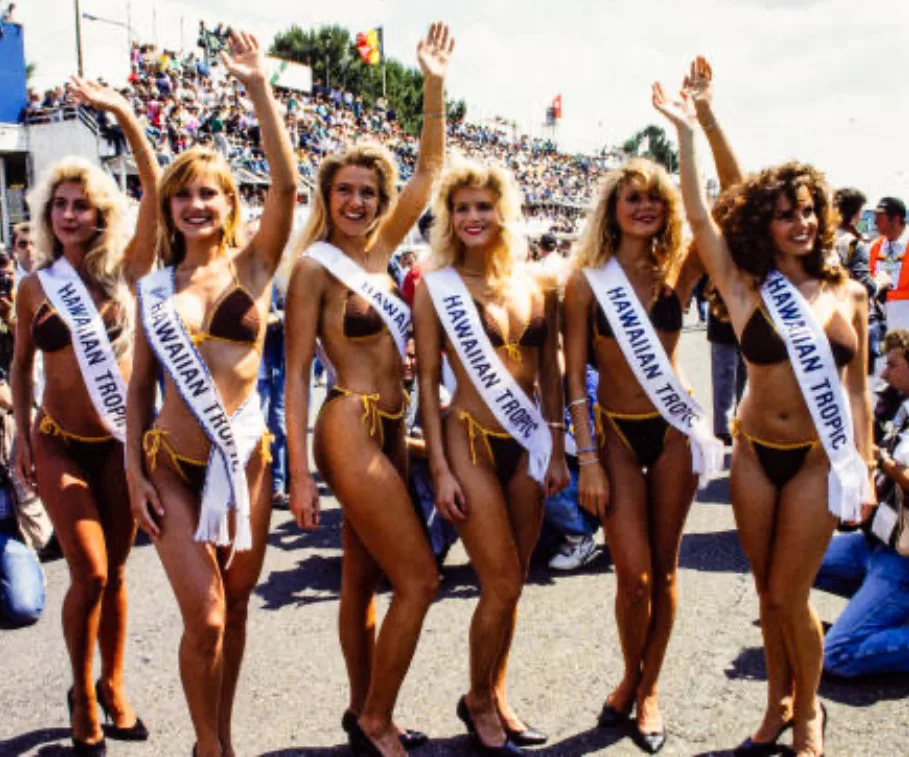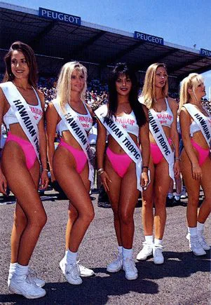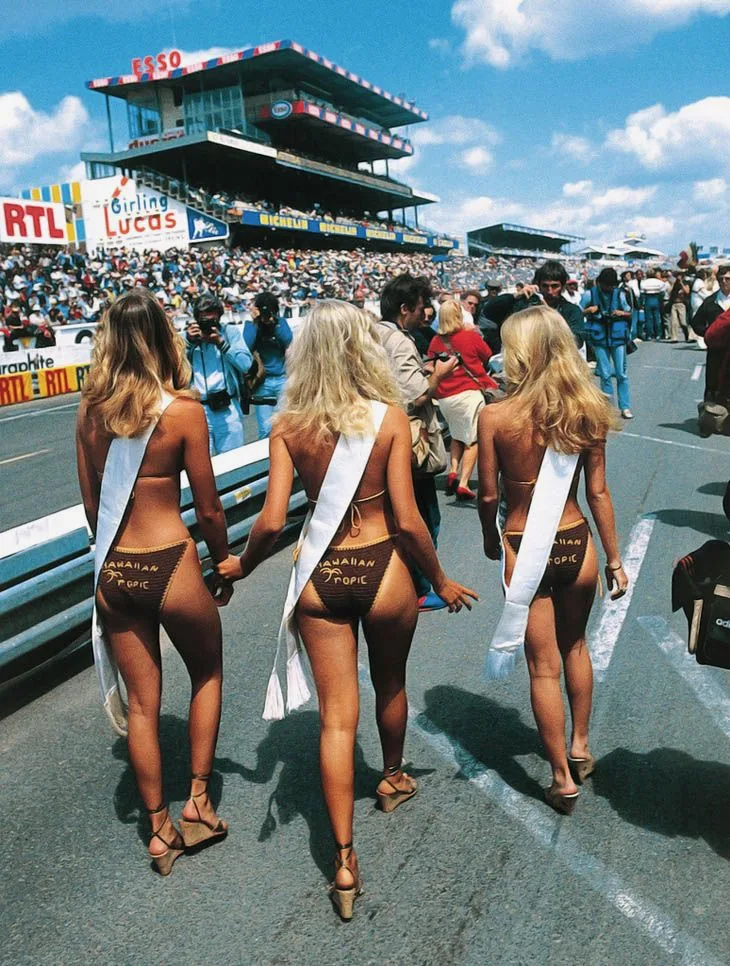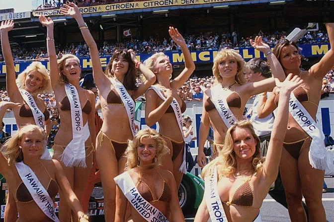 Because of the 30th anniversary of Hawaiian Tropic girls at Le Mans, some girls were dressed in the brown bikini from 1979.