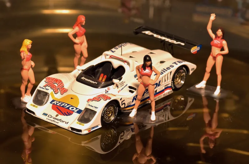 1992 Le Mans 24h, Porsche 962 CK6. The Group C was in its dying years. The introduction of the atmospheric 3.5 liter engines from Formula 1 couldn’t save it anymore. This older Porsche with its restricted turbo engine struggled in catagory 3. Just like the world championship, the Kremer Team was on its way down; no top driver could be found in this car. The girls however …