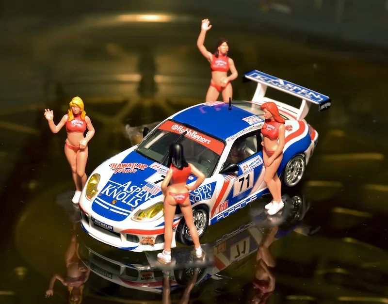 2000 Le Mans 24h, Porsche 911 GT3 R. The Porsche GT3 has become very popular in a short time; in the 2000 Le Mans race, all 12 cars in GT were Porsches. The Hawaiian Tropic supported car from Michael Colucci failed to finish the race because of a crash.