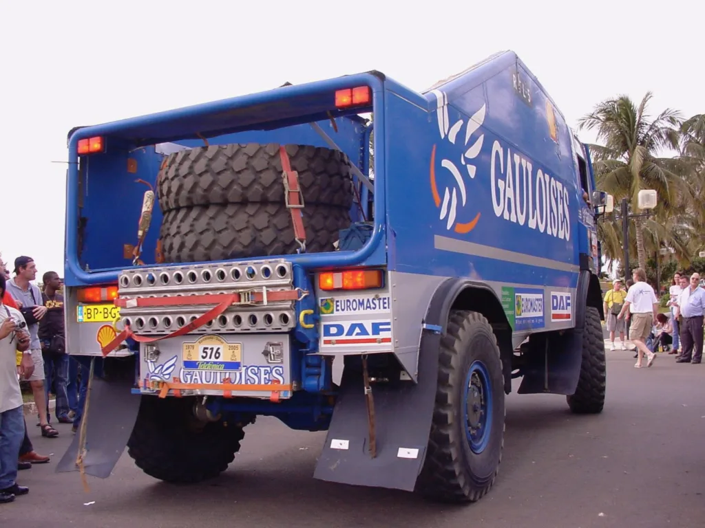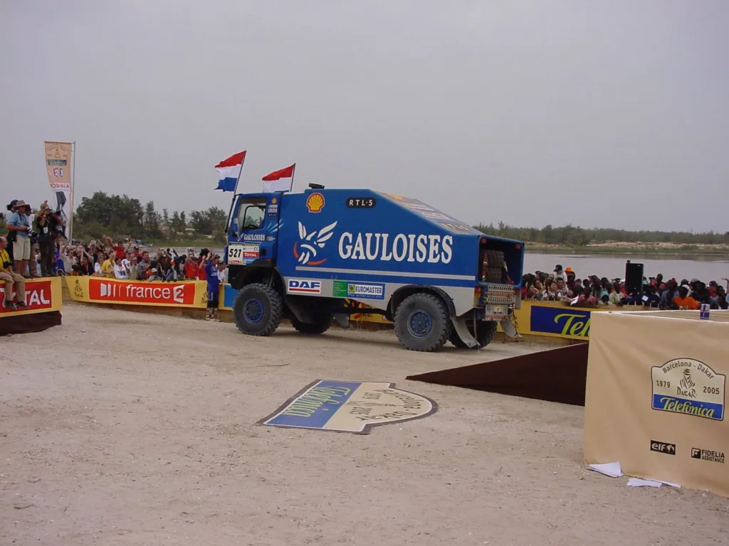 2005 Barcelona – Dakar, DAF CF75 FAV4x4. Jan de Rooy drove many Dakars in the 1980’s, winning in 1987 with his mighty DAF TwinTurbo II. Those monster trucks with 2 engines and over 1000 hp are prohibited now, also the top speed is restricted to 160 km/h. Now Jan is back after a 13 year break, this year together with his son Gerard in the same team. Father and son De Rooy were aiming for a podium in 2005, but were beaten by the Russian Kamaz. Jan finished 6th and Gerard 5th.