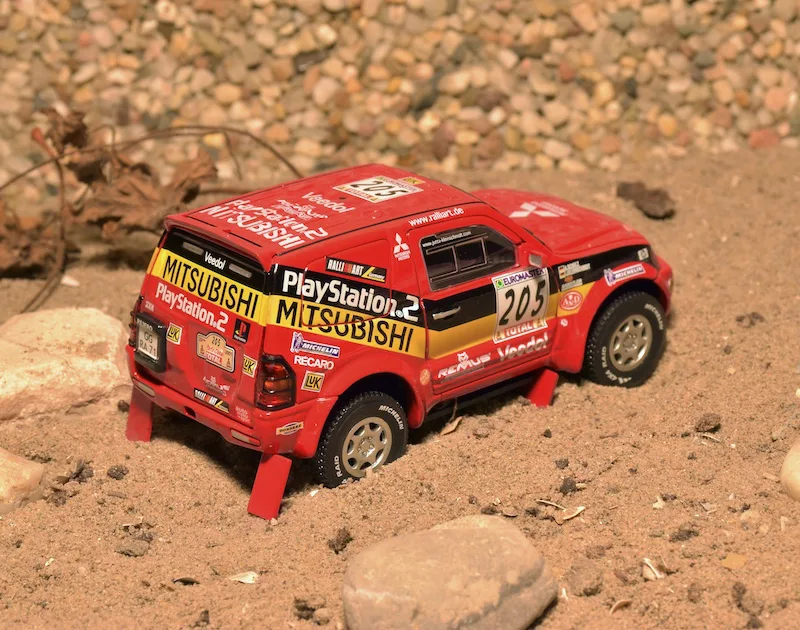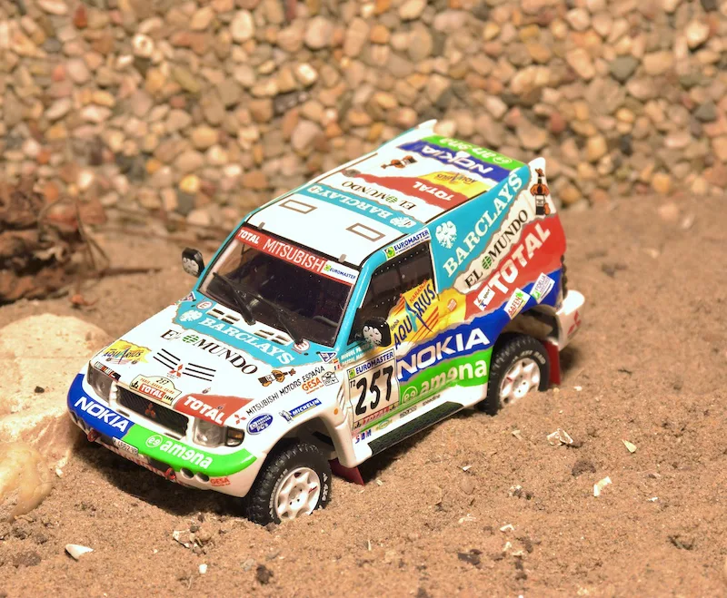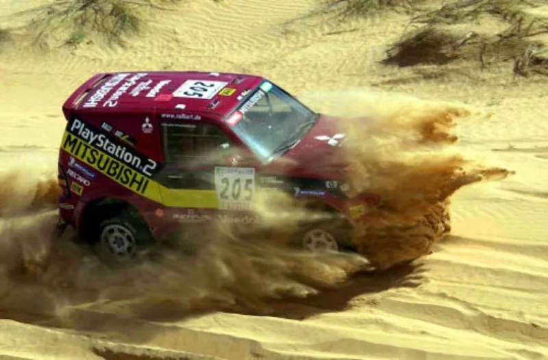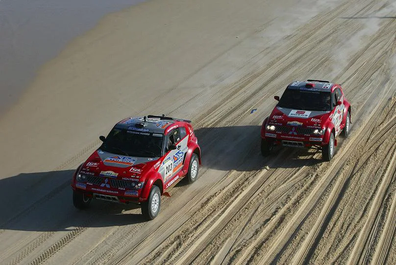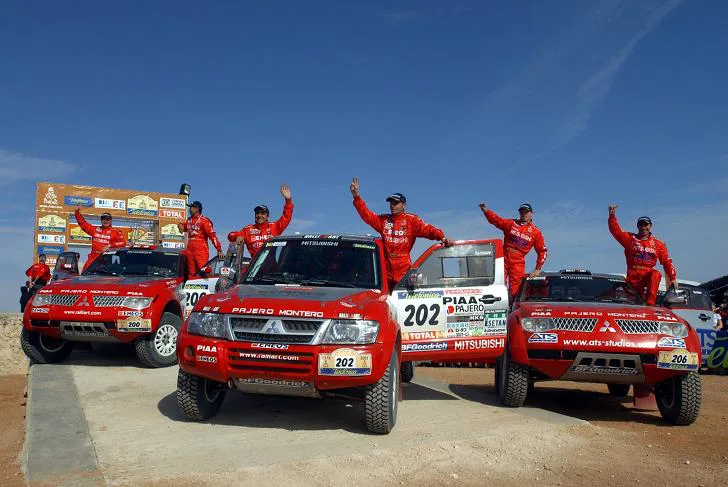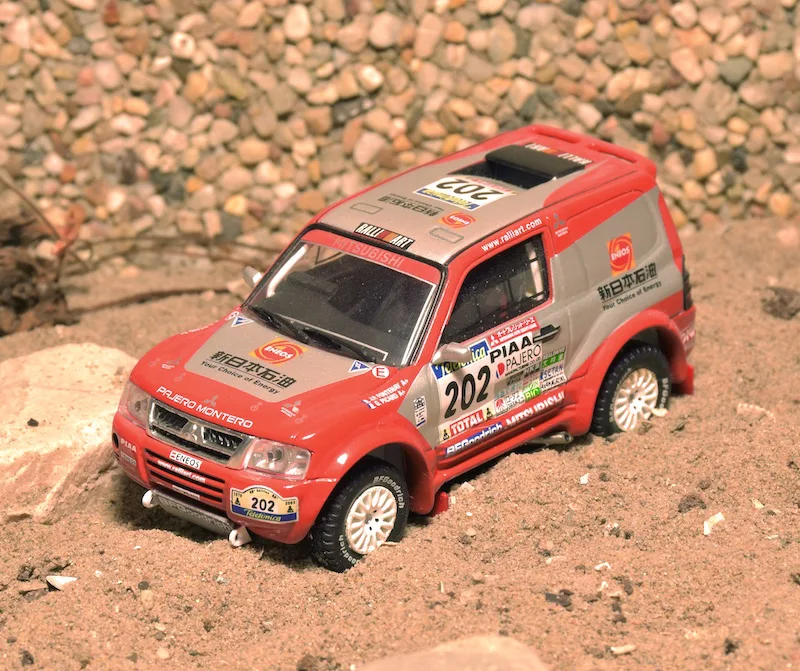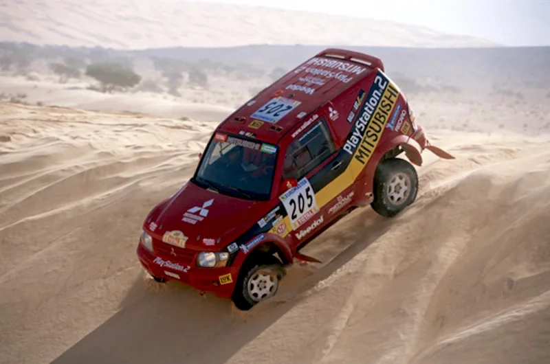 2005 Barcelona – Dakar, Mitsubishi Pajero evo coupe. A lot of Dakar experience is combined here. Mitsubishi’s and Dakar go back until 1983 when Andrew Cowan won the marathon class. Cowan has led Mitsubishi towards 9 overall victories since then. Stephane Peterhansel had won Dakar 6 times on a bike and this is his second of 8 victories on 4 wheels.