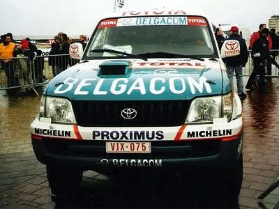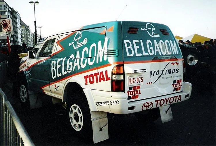 Belgacom Toyota Landcuiser – 3.0 liter Toyota straight-6 approx. 210 hp. Michelin tires. Weight 2000 kg. Steel chassis, chassisnr. Toyota J100 unknown 4WD