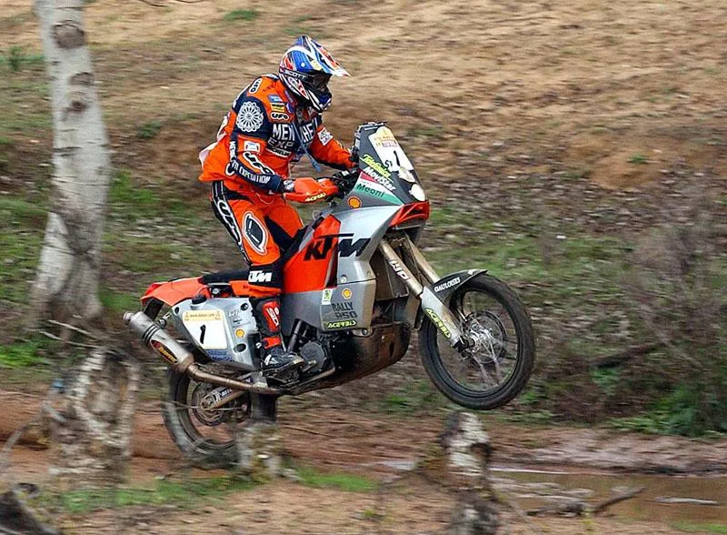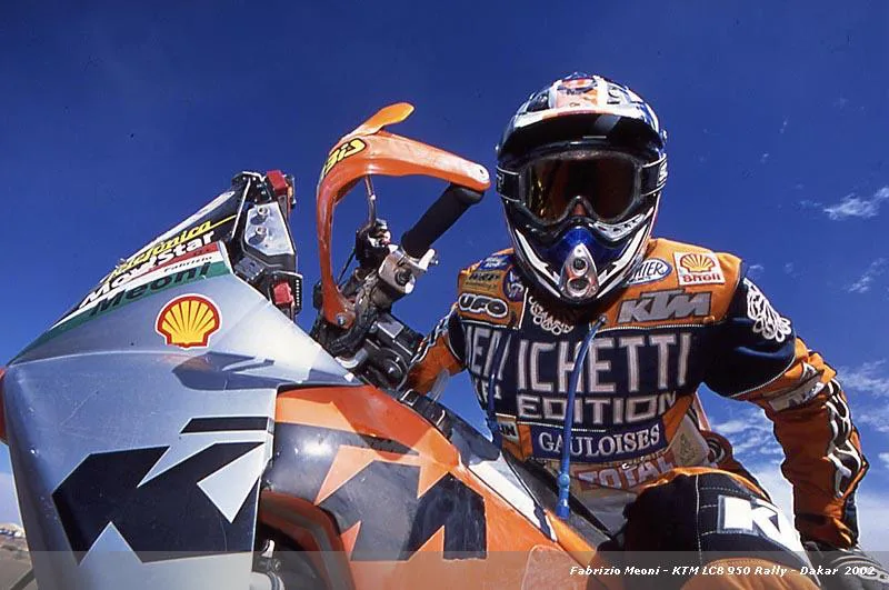 2002 Arras – Madrid – Dakar, KTM LC8 950 Rally. KTM is the leading bike manufacturer in the Dakar rally. It’s number one rider Fabrizio Meoni won in 2001 with a single-cylinder and in 2002 with this big twin-cylinder bike, but sadly had a fatal accident in the 2005 Dakar while riding in the lead.