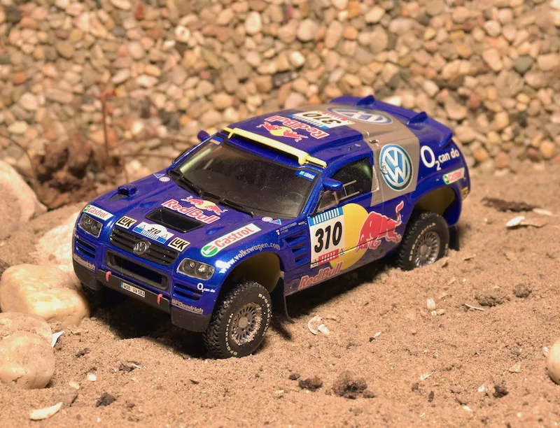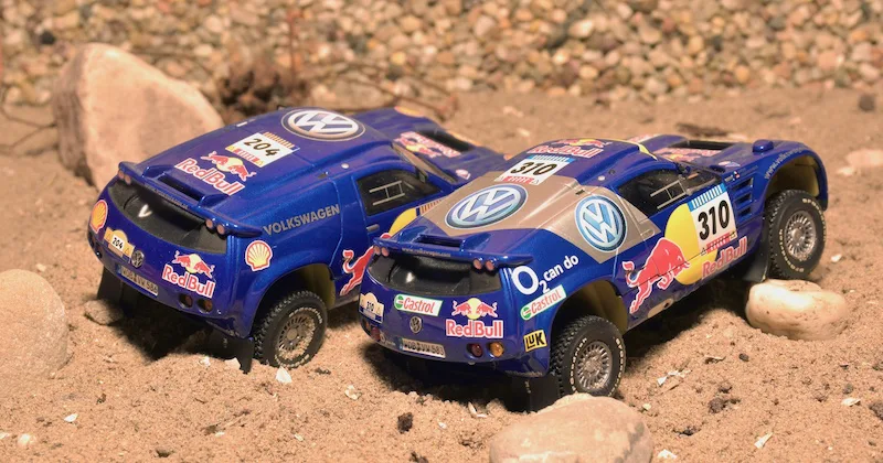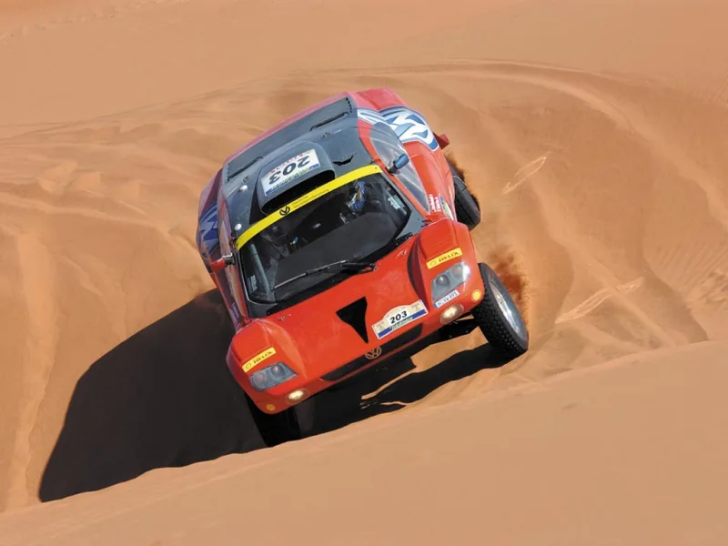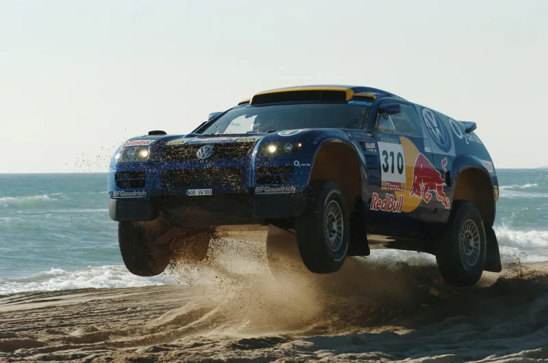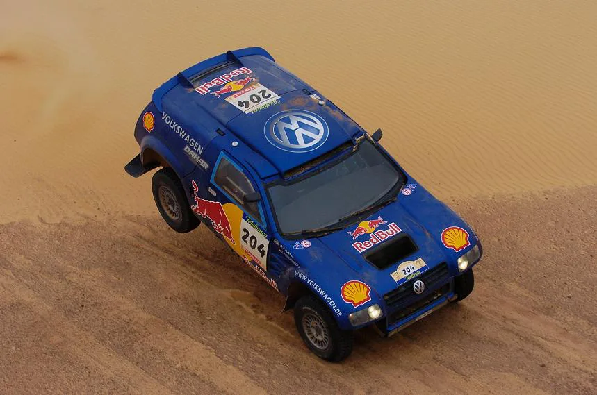 2004 Barcelona – Dakar, VW Race Touareg. Volkswagen won Dakar back in 1980, only the second year in the existence of the rally. The new prototype 4WD VW Race Touareg arrives in 2004 with support from Red Bull. It would be a learning year in which both cars manage to reach Dakar. In 2005 the car is already more competitive (third) and a winner in the future.