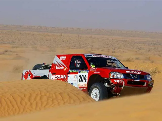 2003 Marseille – Sharm el Sheik, Nissan Navara. Nissan introduced the new Navara Pick Up in 2003. Target is to win Dakar within four years (which wouldn’t be the case). Old desert fox Ari Vatanen, who already won 4 times, scored 4 day victories and finished 7th overall in the first year as a full works team.