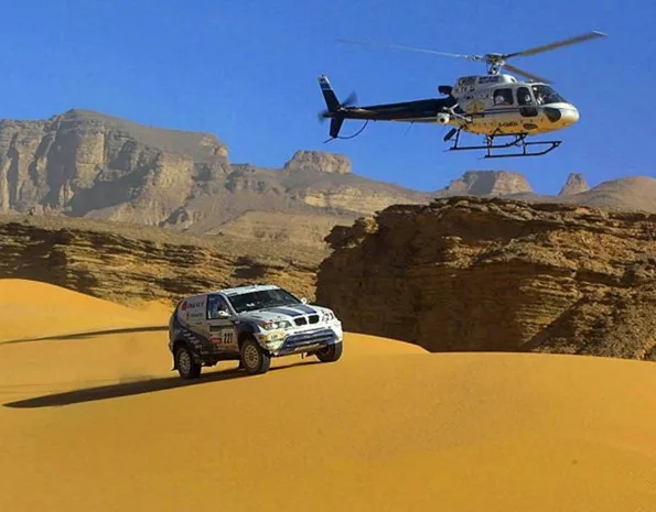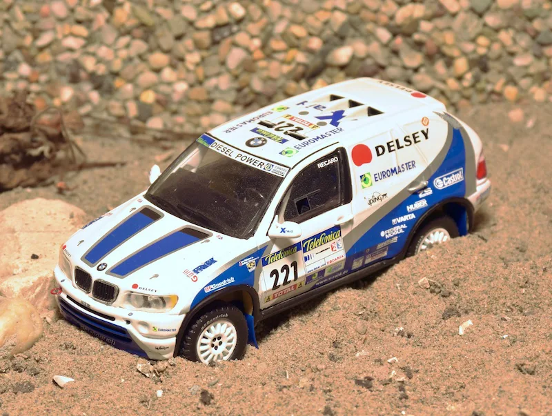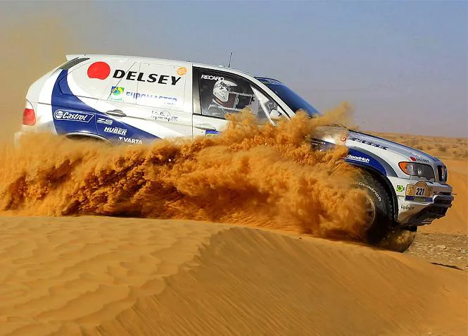 2003 Marseille – Sharm el Sheik, BMW X5. X-raid, the team from BMW-heir Sven Quandt built this Dakar version of the luxury SUV BMW X5. Former alpine ski star Luc Alphand drove the twin-turbodiesel X5 towards a 9th place in its desert debut.