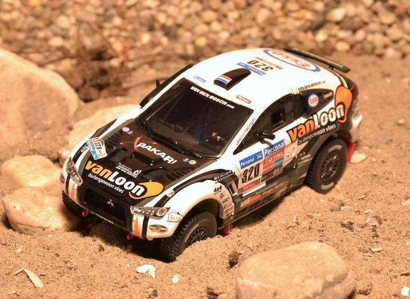 2011 “Dakar” Argentine – Chile – Argentine, Mitsubishi Lancer Racing. Dutchman Erik van Loon tried his luck first in the ‘normal’ rallies before switching to Dakar. This year he competes in a Mitsubishi Lancer Racing and manages a very fine 11th place in the end. The Dakar is won by Nasser Al-Attiyah in a Volkswagen Race Touareg.