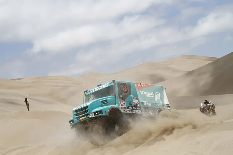 2012 “Dakar” Argentine – Chile – Peru, Iveco Powerstar. Jan de Rooy drove many Dakar’s in the 1980’s, winning in 1987 with his mighty TwinTurbo II. After a break of 13 years, he again participated in 2002 together with his son Gerard. Father and son De Rooy tried to beat the Russian Kamaz for a number of years, but the DAF just was not powerful enough. Gerard decides to build his own prototype based upon a Iveco Powerstar and wins in 2012.