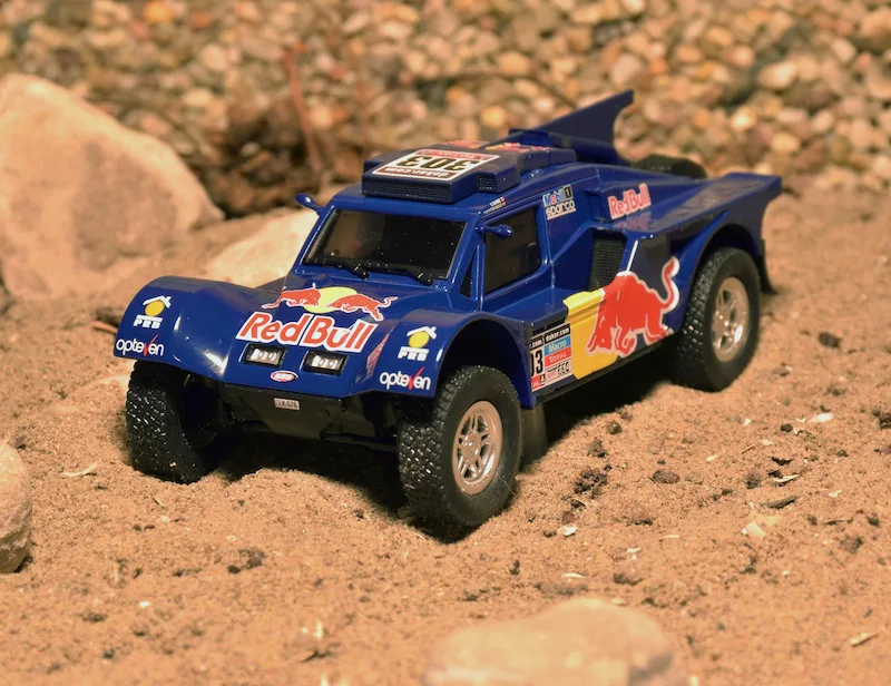 2014 “Dakar” Argentine & Chile, SMS Original. Carlos Sainz won “Le Dakar” in 2010 with the Red Bull sponsored VW Touareg. In 2014 he is back in the Red Bull team, now with a French built SMG, a 2-wheel driven buggy with Ford V8 engine developed and built by Philippe Gache. He won two stages but didn’t reach the finish. The next few years he would be driving for Peugeot.