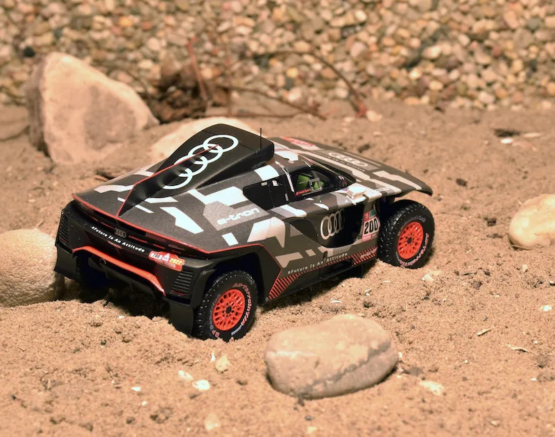 2022 “Dakar” Saudi Arabia, Audi RS Q e-tron. In 2022 Audi joins the Dakar competition with an exceptional car. The RS Quattro e-tron has two electric motors, but also a TFSI petrol engine from a DTM car that acts as a generator and makes more noise than any other Dakar car because it’s constantly revving to charge the batteries. The project will last three years, 2022 was a learning year and Stéphane Peterhansel won one special stage but didn’t finish the rally. Mattias Ekström and Sainz both won a stage in 2023, but only Ekström finished the race in 14th place. In 2024 – the last year of the project – good old Carlos Sainz sr. was fast and reliable and would take victory.