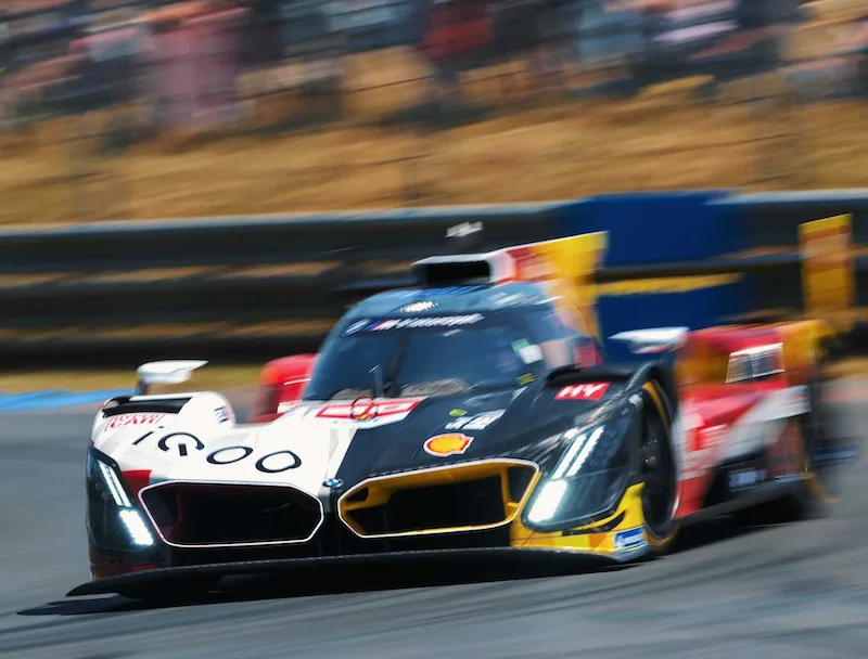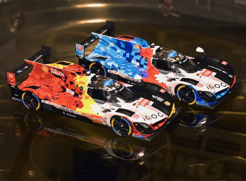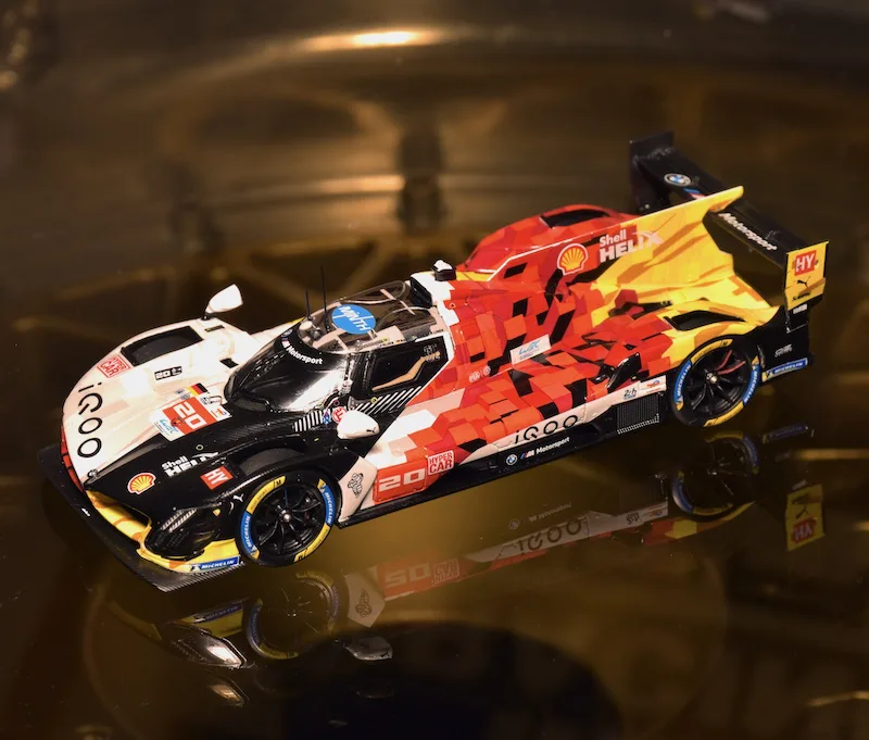 BMW M Hybrid V8 – Hypercars LMDh. Powered by 4.0 liter BMW P66/3 V8 90° twin turbo hybrid – approx. 680 hp + 70 hp. Michelin tires. Weight 1050 kg. Carbon fibre monocoque, chassisnr. Dallara #P22B 007.