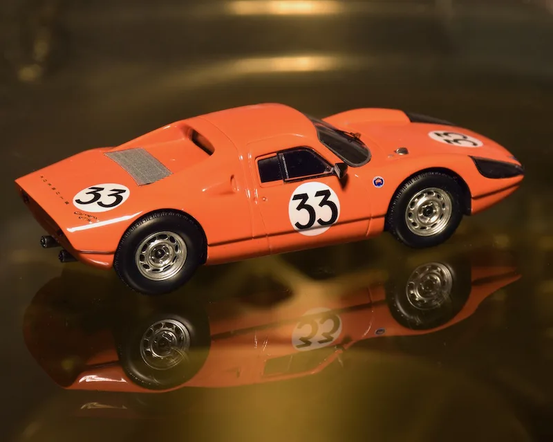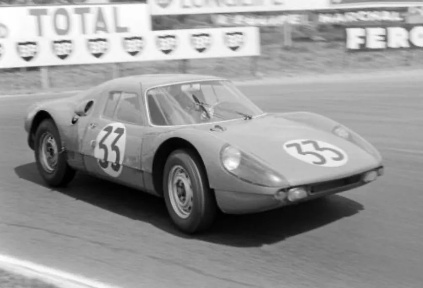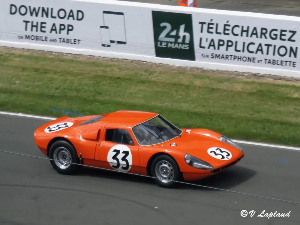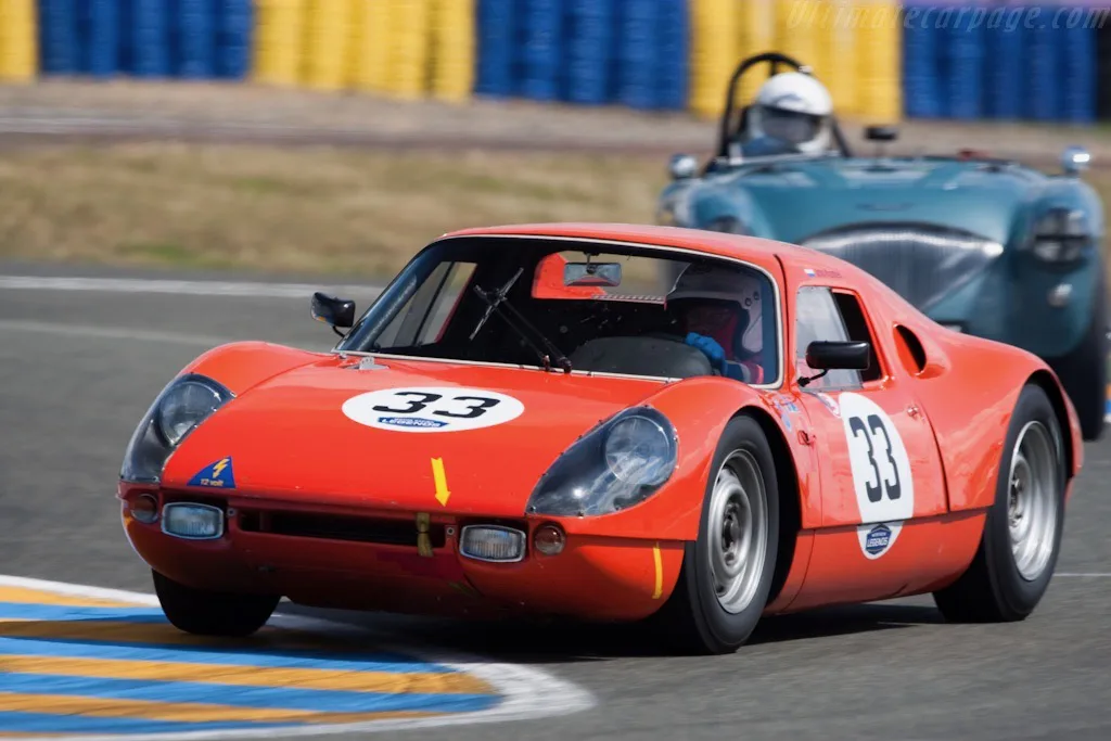 1964 Le Mans 24h, Porsche 904/4 GTS. The Porsche 904 was a small, light GT with great performance and reliability. That is, if equipped with the original flat-4 engine. Two factory 904/8 were entered with 2-liter 8 cylinder engines but both retired with clutch related problems. The 4 cylinder versions all finished in the top 12 overall and 1st to 5th in the 2-liter GT category. One of these was the bright orange Racing Team Holland car from Ben Pon.