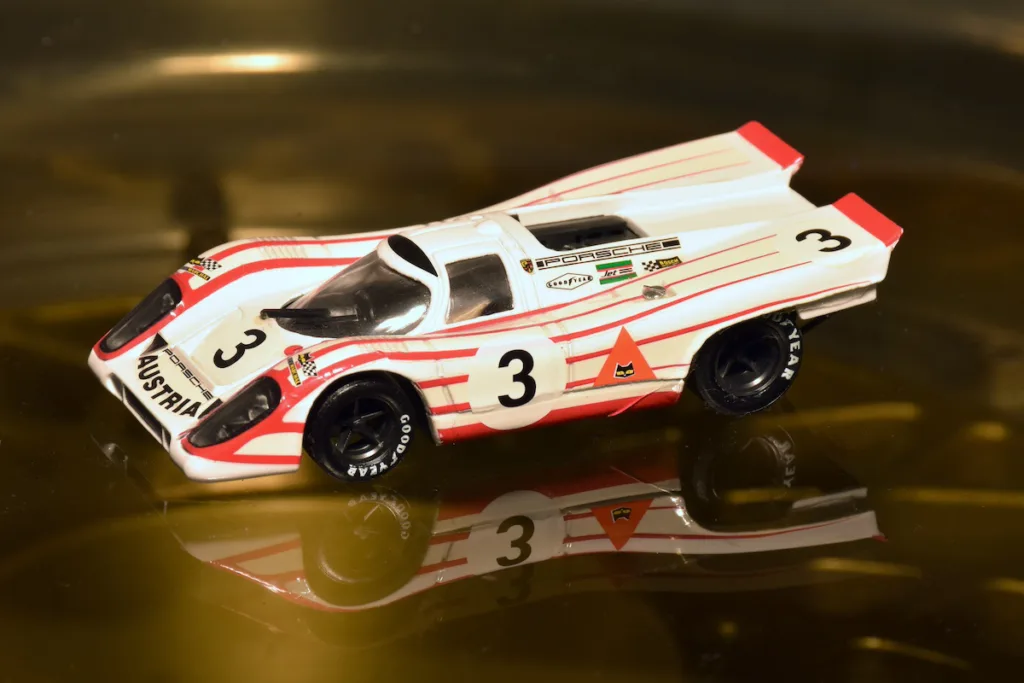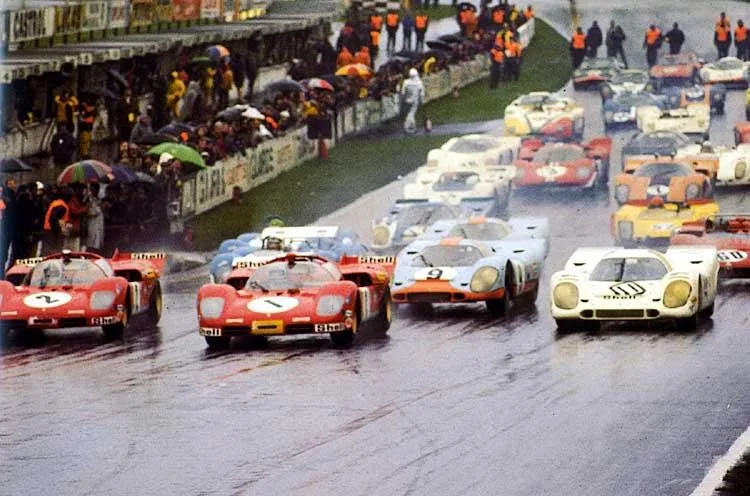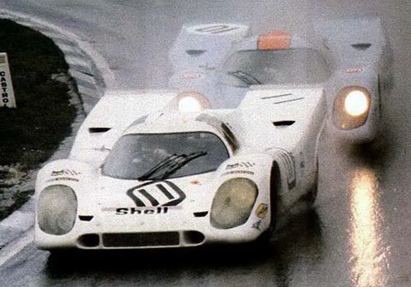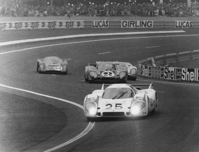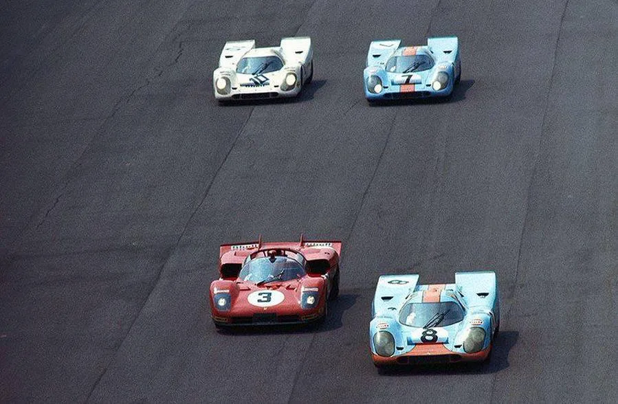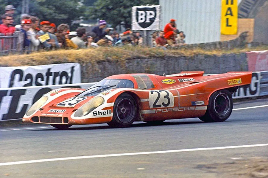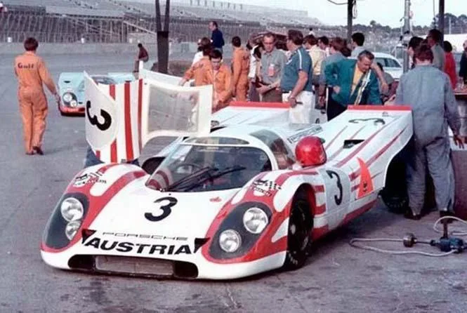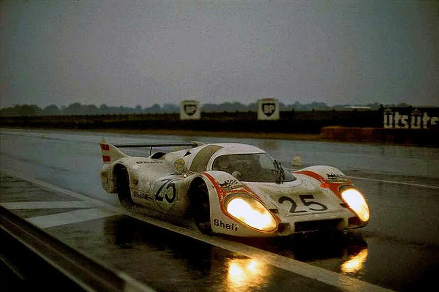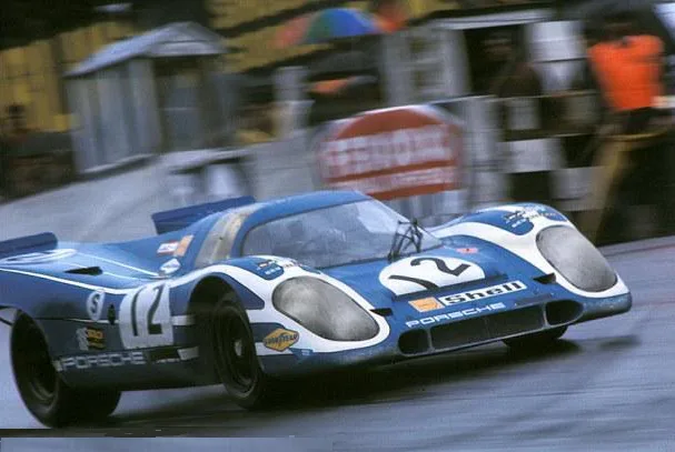 1970 Le Mans 24h, Porsche 917K. The Porsche 917 was the favorite for the 1970 Le Mans race. This Porsche Salzburg car won the race however it wasn’t the fastest car on track, but one of 7 (!) that managed to finish the race under very bad weather conditions. It was a historic race, not at least because it was the first overall win at Le Mans by Porsche.