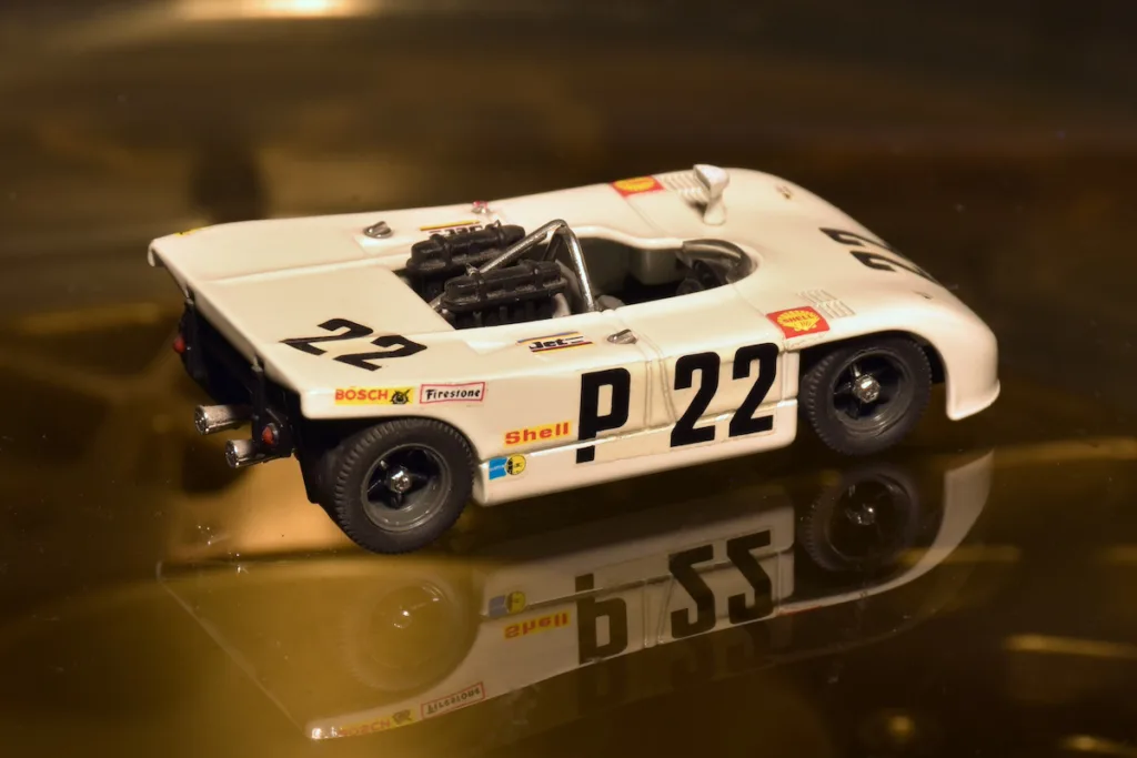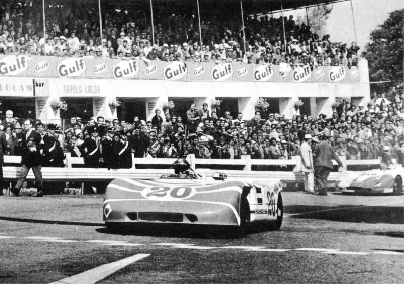 1970 Targa Florio, Porsche 908/03. Also at the Targa Florio the Porsche 908/03 was almost unbeatable. The Targa Florio is almost a rally; a single lap is 71 km / 45 mile long and has over 800 corners. But these are no rally cars where a co-pilot guides you, this is a world championship race in which 400 hp prototypes race, insane! The John Wyer Porsche 908/03’s finished 1st, 2nd and 5th. This Salzburg 908/03 failed to finish because it crashed in the first lap.
