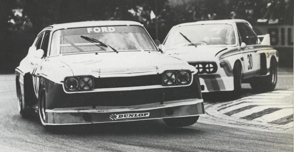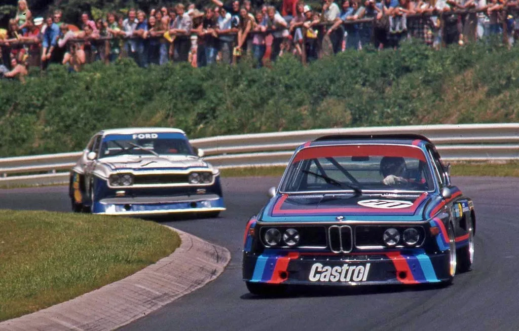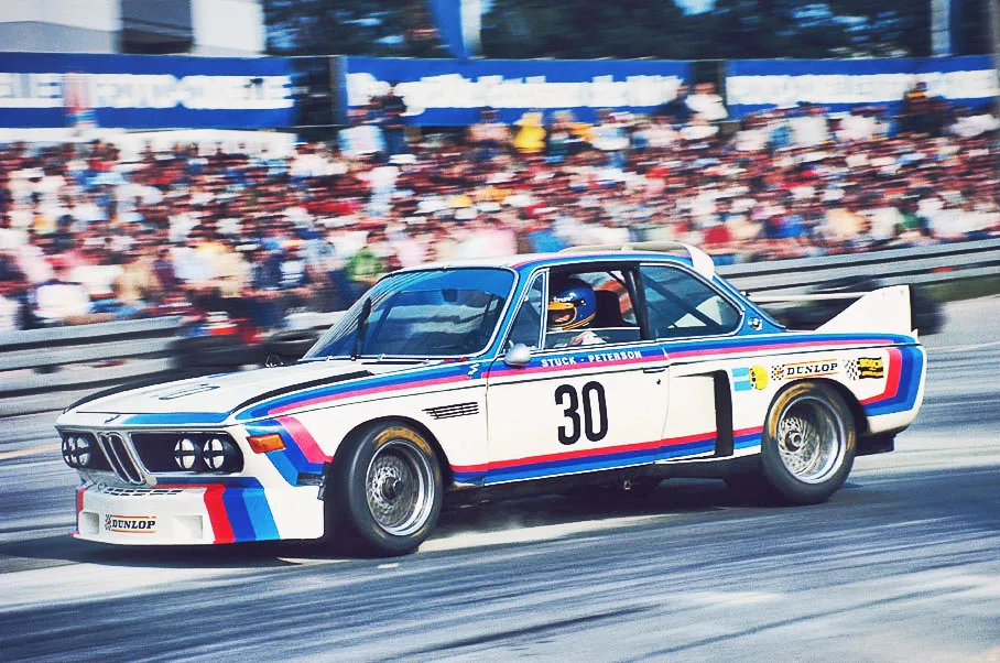 1975 Norisring, BMW 3.0 CSL. At the end of the 1974 season, Ford retired from Motorsport and archrival BMW went to the USA. Only for the most prestigious race in the 1975 DRM Championship at the Norisring , the old rivals met again. Peterson drove the car in the non championship “money race” and Stuck piloted it in the DRM race. Both times the BMW retired with brake problems. That last one was won by Jochen Mass in the old factory Capri.
