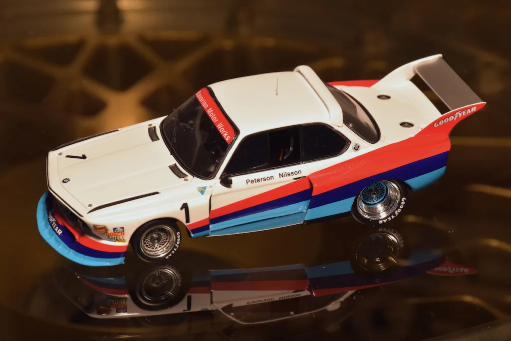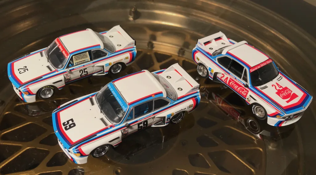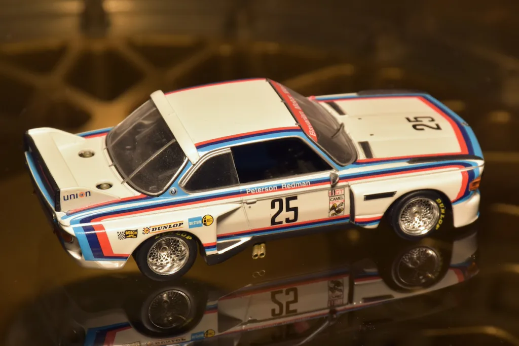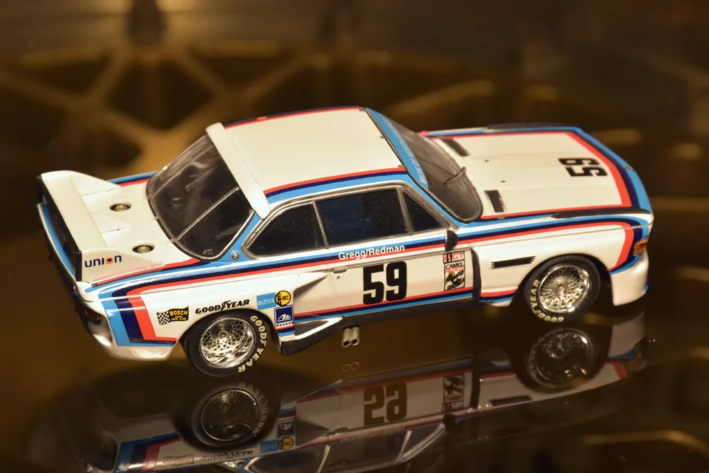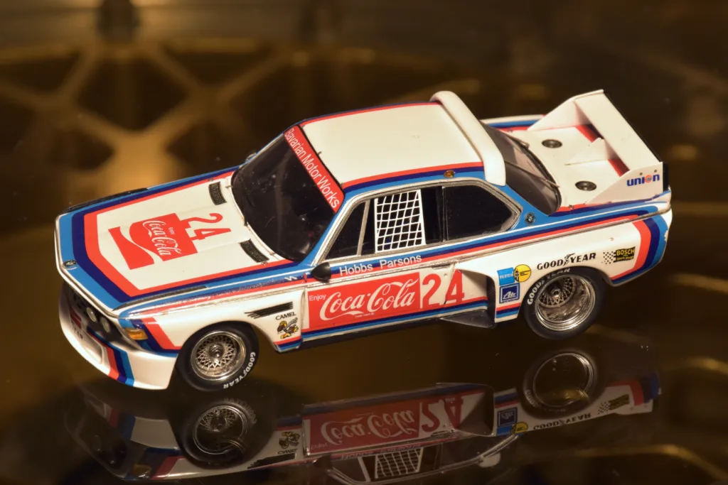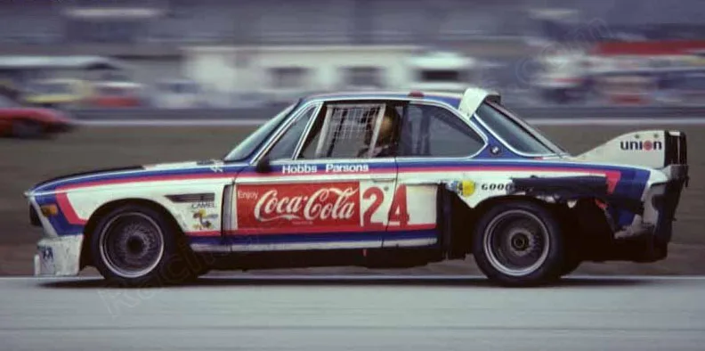 1976 Daytona 24h, BMW 3.5 CSL. The factory “Bavarian Motor Works” team won the Sebring 12-hour race last year and this year’s Daytona 24-hour race. The Coca Cola sponsored #24 BMW finished 10th despite the damage, #25 retired. Drivers to the winning #59 were Peter Gregg, Brian Redman and John Fitzpatrick whose name isn’t on the car. He originally drove the #25 car together with Tom Walkinshaw.
