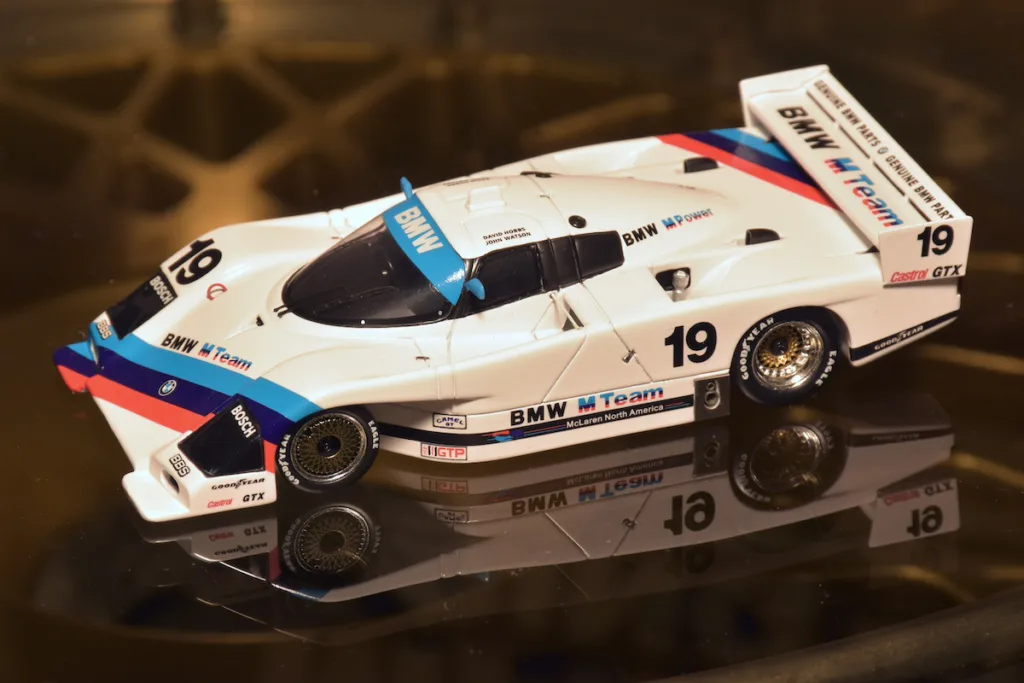 1986 IMSA Portland, BMW GTP. BMW had been succesful in USA with their touring cars and in Formula 1 with their turbo engines. The Germans decided to combine and bought two March chassis which they equiped with a 2-liter version of their 4 cylinder F1 turbo engine. The cars were powerful (upto 1000 bhp in qualifying) but hard to drive and not very reliable. Davy Jones and John Andretti managed a win at Watkins Glen. The best result of #19, driven by John Watson and David Hobbs was 4th at Portland. They could have won the race, but were delayed by a problem with the seat belts during the driver change.