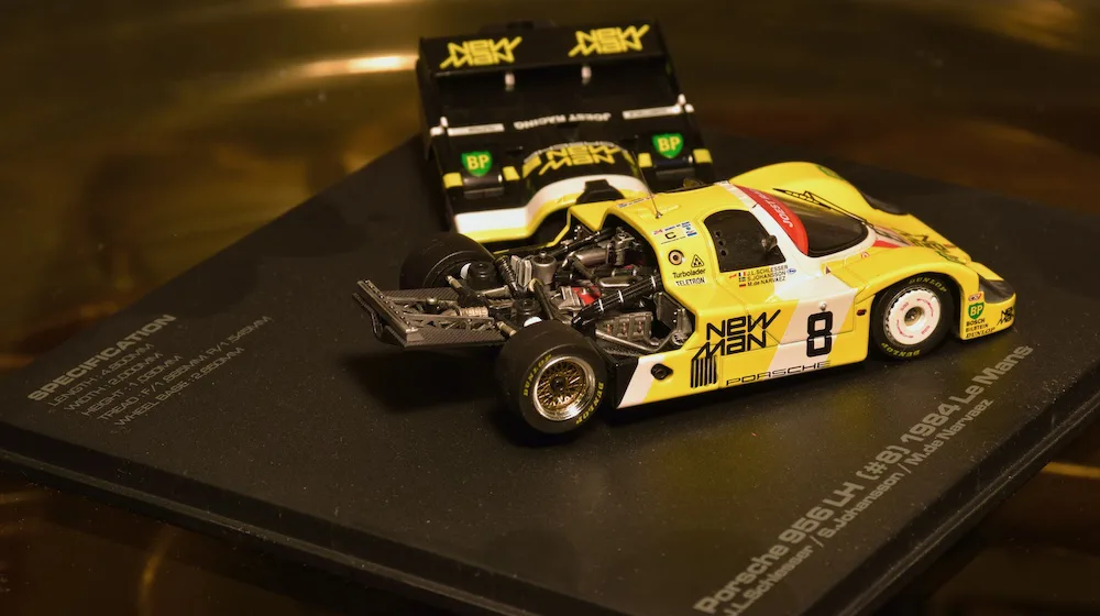 1983 DRM Zolder, Porsche 956K. The Porsche 956 was not only successful in endurance racing, it was also very fast in sprint races. Wollek won the German DRM championship in 1983, just as het did in 1982 when he drove the Porsche 936. The first race of the season was at Zolder in Belgium where the livery of the car was different from the rest of the season.