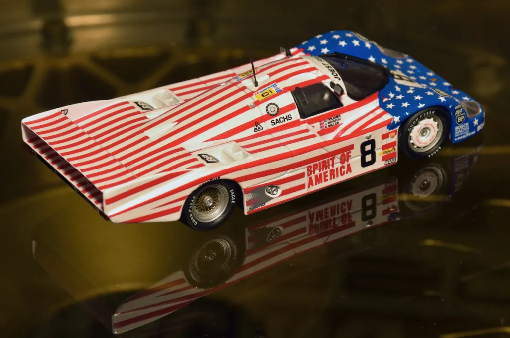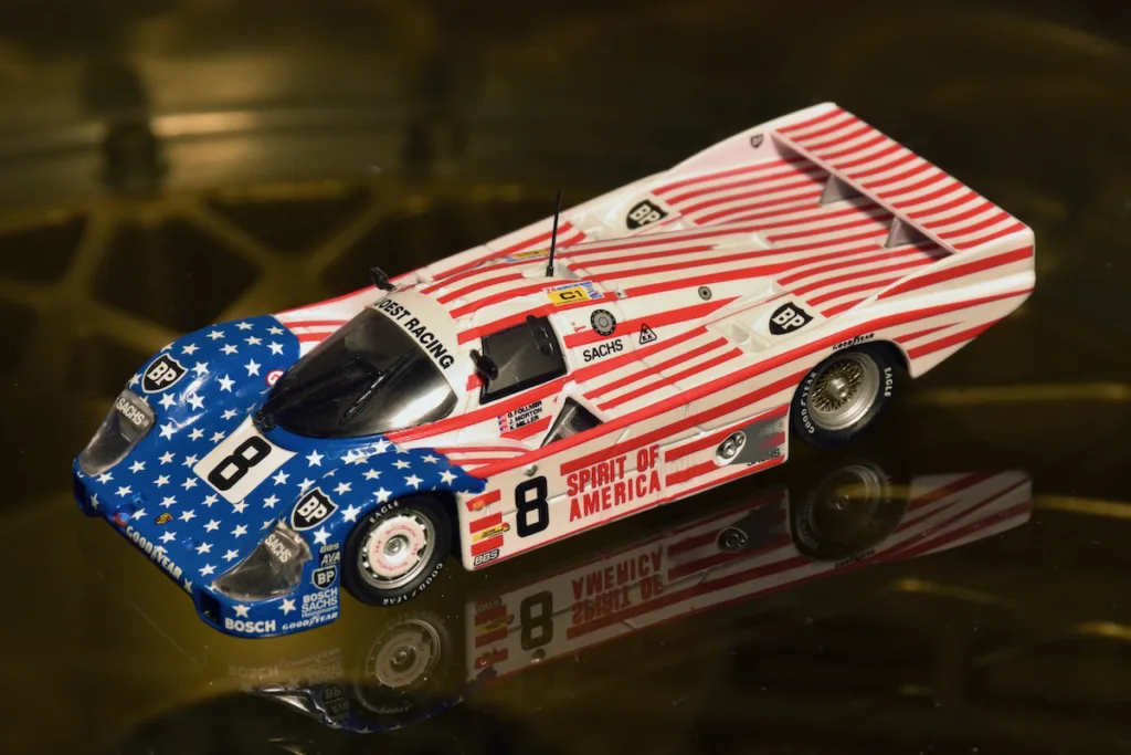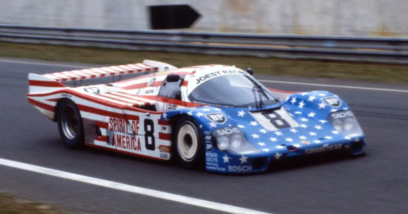 1986 Le Mans 24h, Porsche 956L. Despite two wins in a row, Joest team was not favorite in 1986. The reason? The return of the Porsche factory with the new 962C. But Joest racing did well, the famous chassis 117 retired but this Spirit of America with an all American line up finished 3rd. The factory Porsche won, of course.