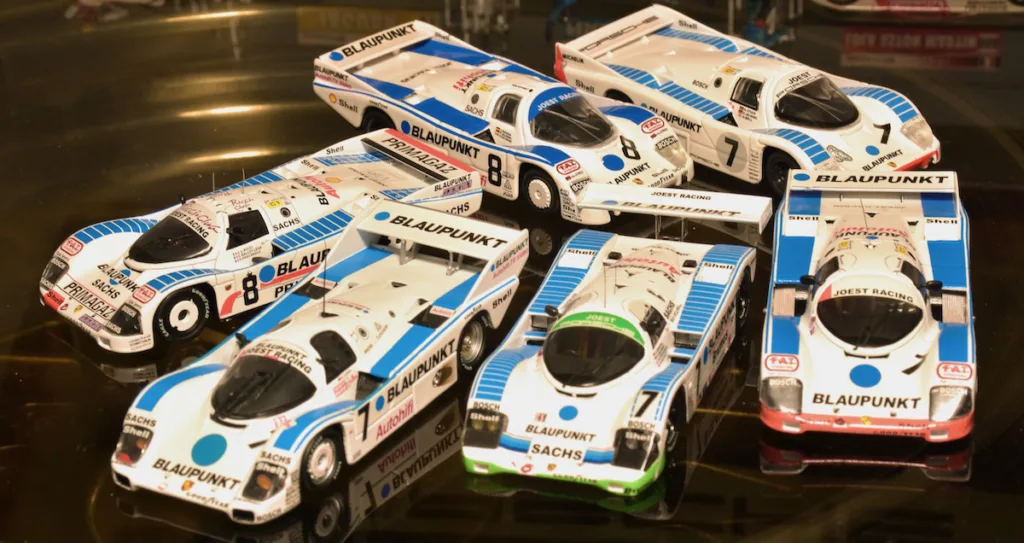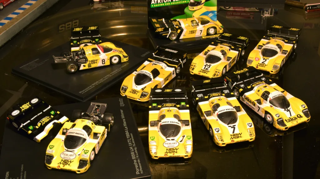 Reinhold Joest (started his racing career as Jöst, but the two dots on top of the O aren’t recognised always internationally) raced some 20 years in all kind of Porsches before he started his own team. Joest Racing has been very successful since the early 80’s, they won Le Mans already 8 times. In this collection you will find mainly Porsche 956 and 962’s, other Porsches will be presented later. The Audi’s can be found here.