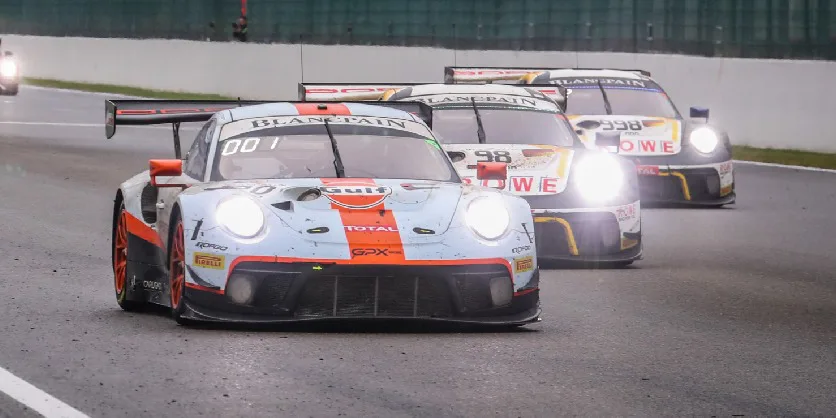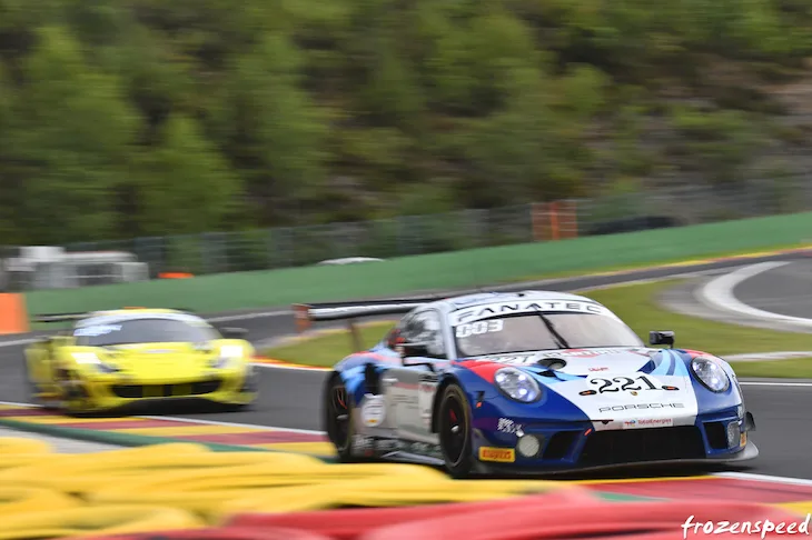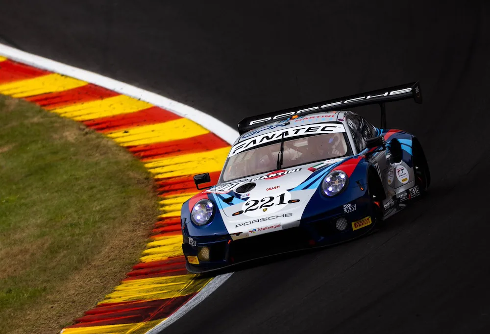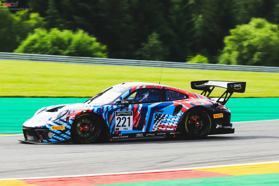 2021 Spa-Francorchamps 24h, Porsche 911 GT3 R (991). In 2020 GPX had traded their Gulf livery to that from the 1971 Le Mans winning Porsche 917K. Unfortunately, a steering problem forced the team to retire.