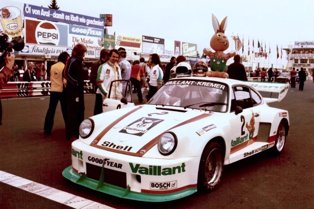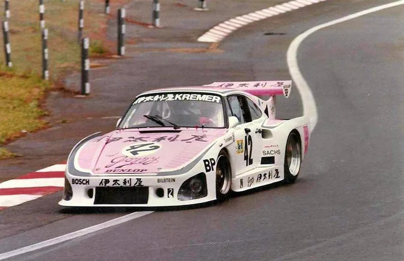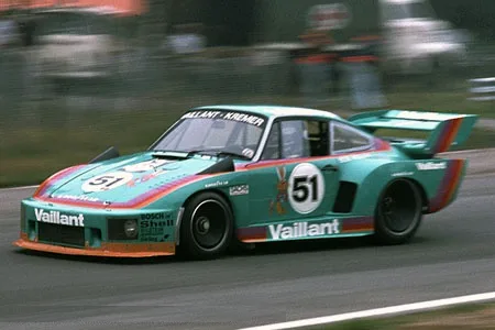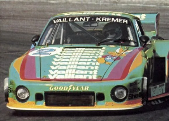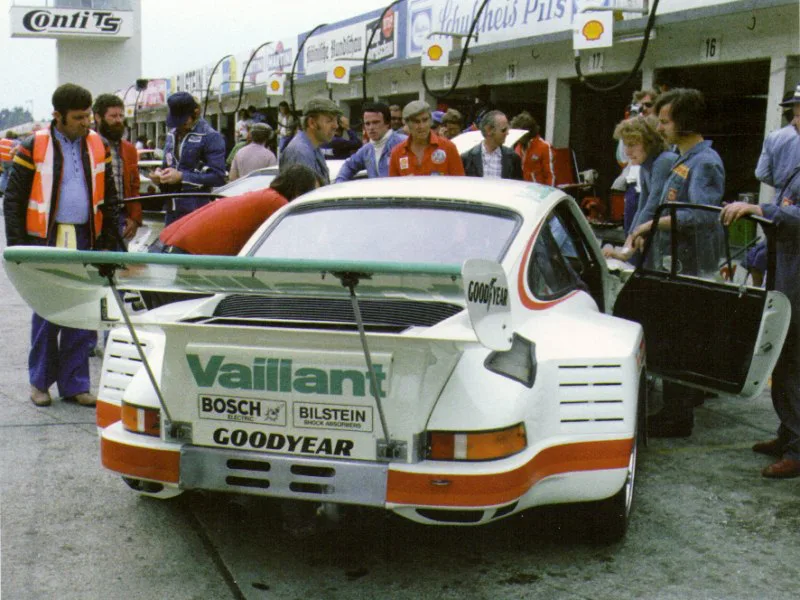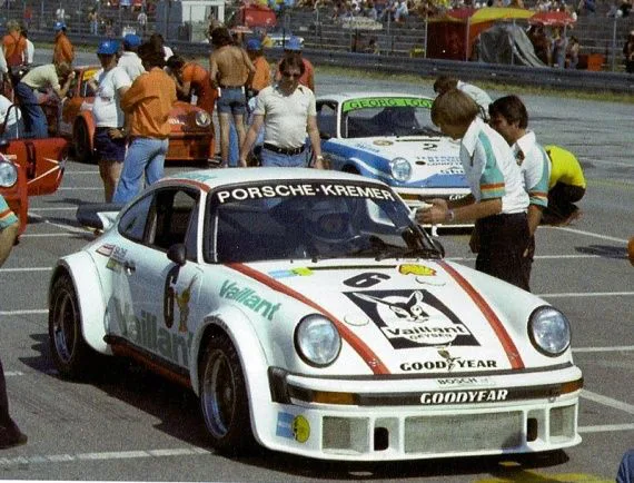1976 Nürburgring 1000 km, Porsche 935 K1. The new group 5 rules were a perfect match for Porsche. They developed the 935 out of the 911 turbo (930) streetcar and won the first few races, but at the Nürburgring got defeated by the fast BMW coupé. Kremer Racing built its own version of a Porsche 935, the K1. It wasn’t as fast as the works car, but better than the 934/5. Unfortunately the 2nd spot on the grid didn’t pay off in the race because the car retired with a broken driveshaft.